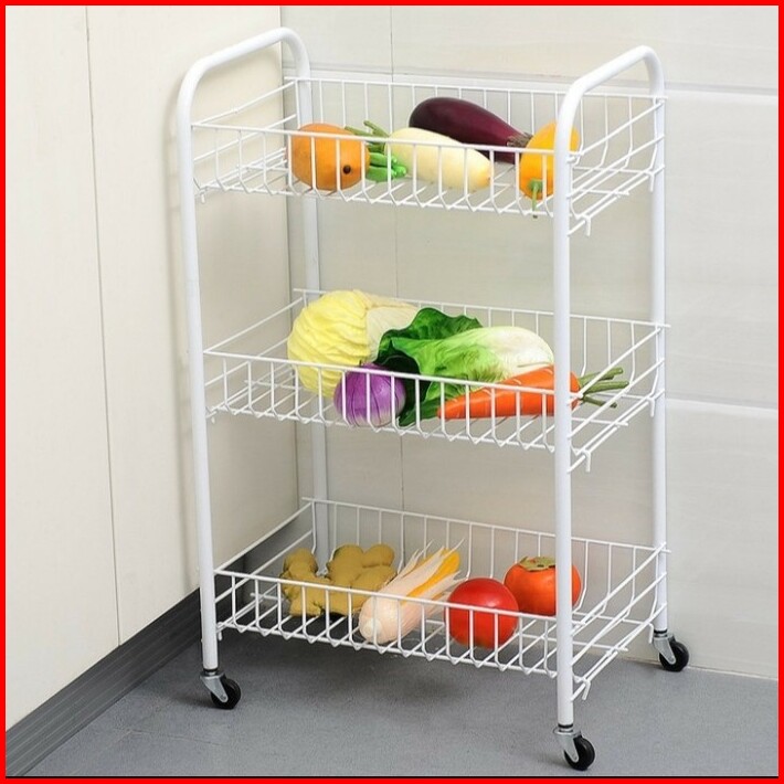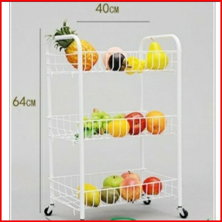 Rak Dapur 3 Susun Roda Serbaguna Rak Keranjang Display