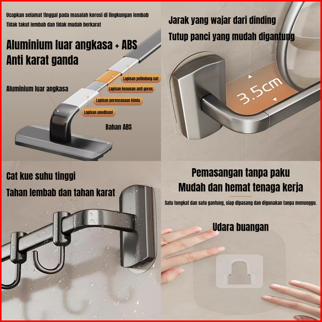 Rak Dapur Gantungan Panci Wajan Pisau Kitchen Bar Rak Gantung 25 35 45 55cm Stainlesss Steel Capstock Hanger Hanging Rai