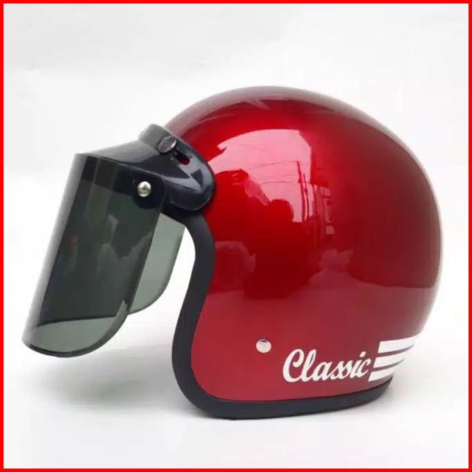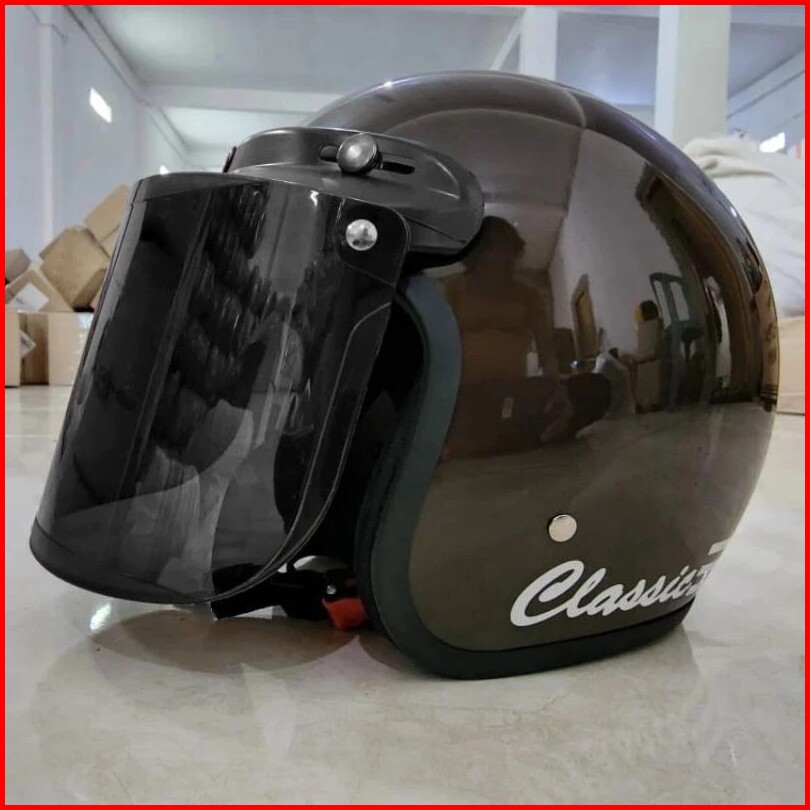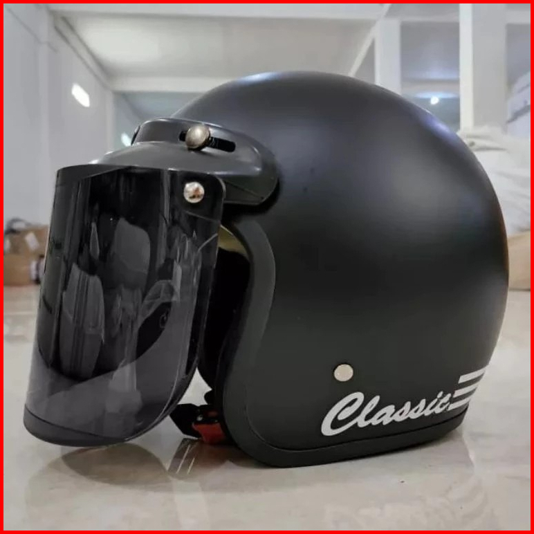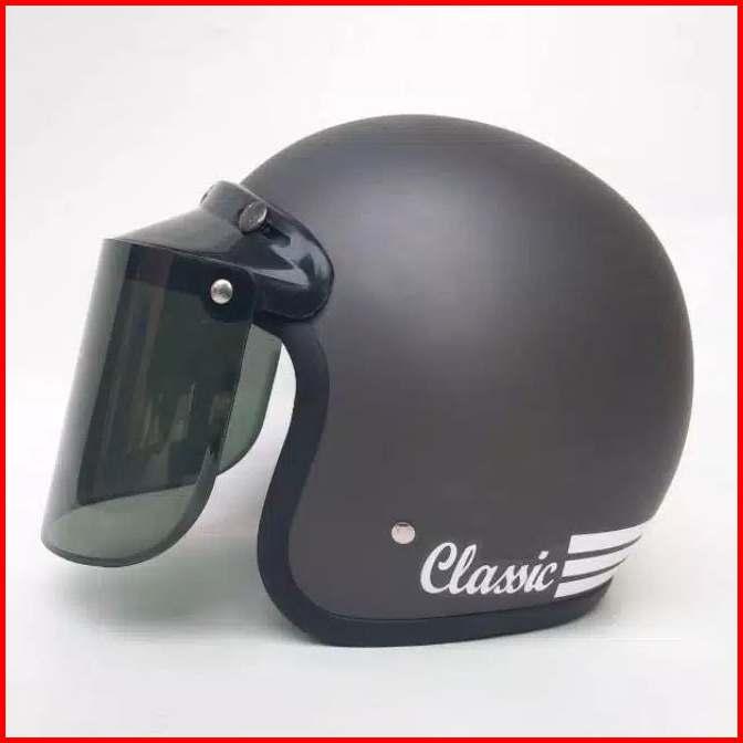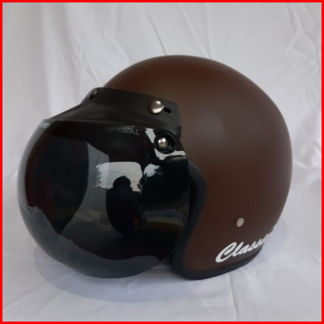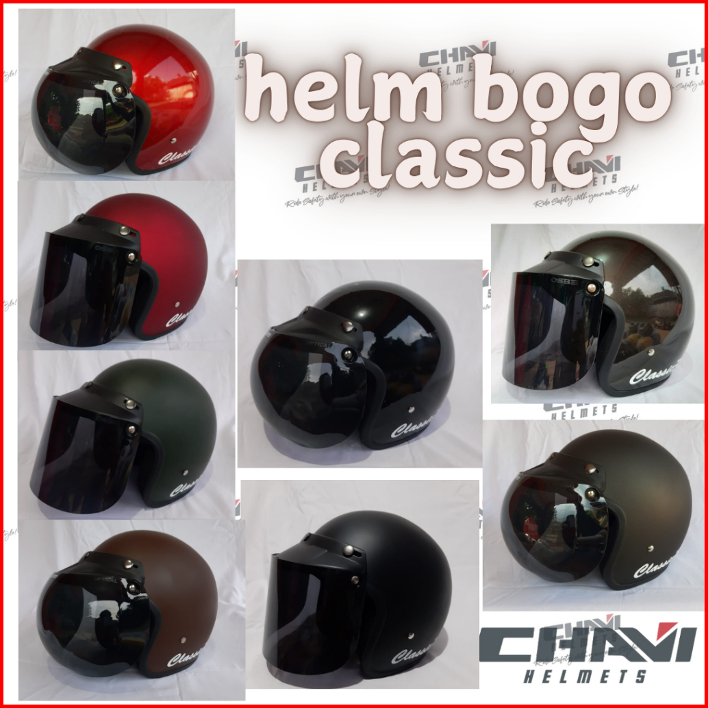 Helm Bogo Classic Sni Dewasa Doff Visor Cembung Flat Smoke Clear Helm Retro Pria Wanita