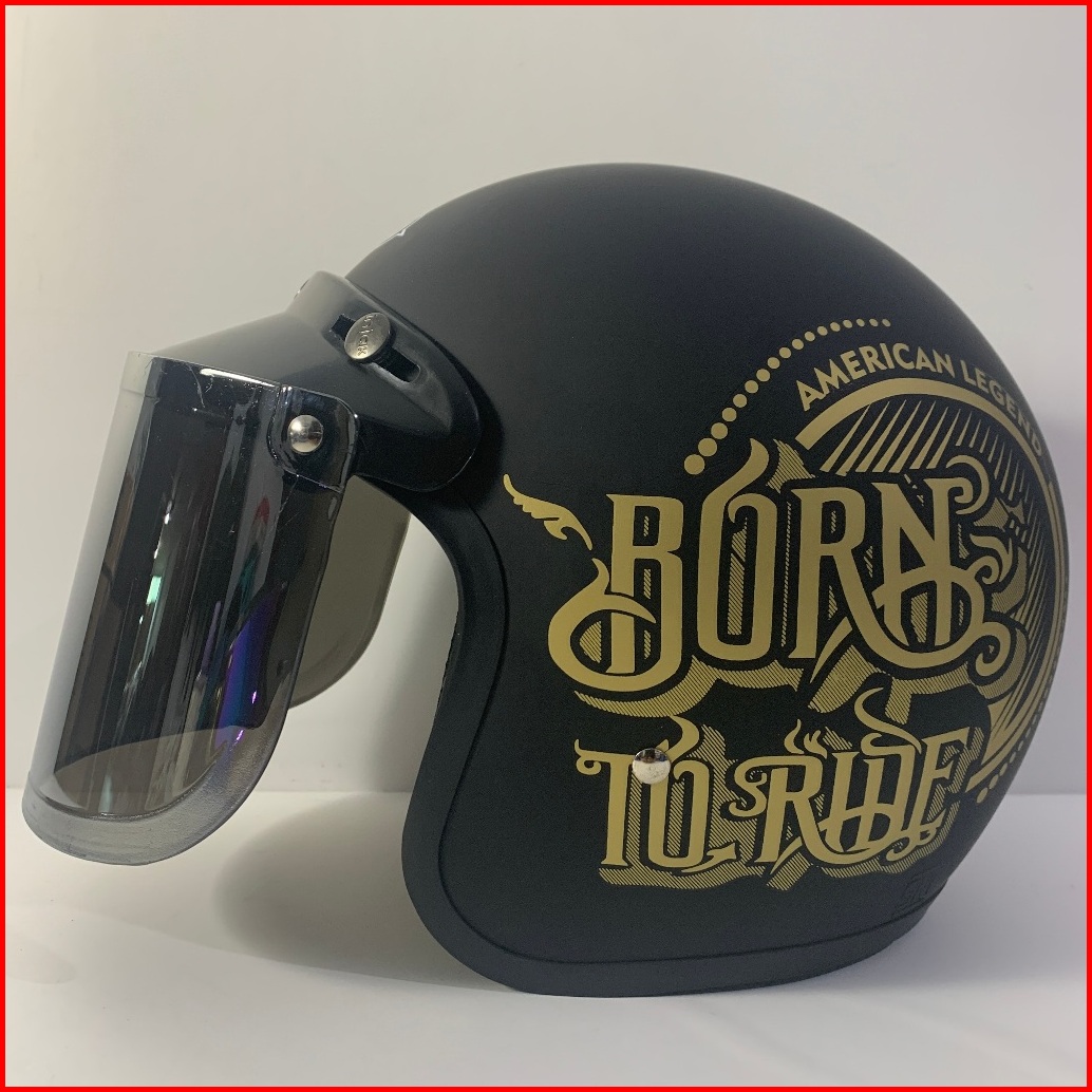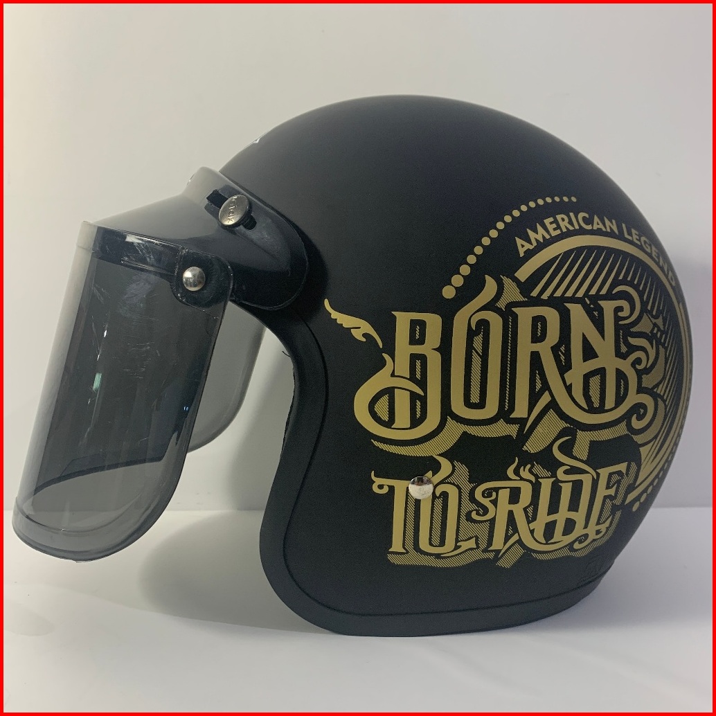 Helm Bogo Born To Ride Doff Sni Dewasa Retro Motif