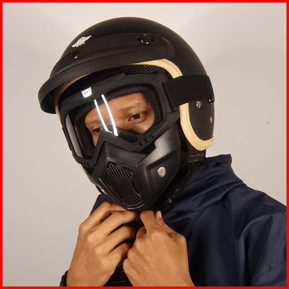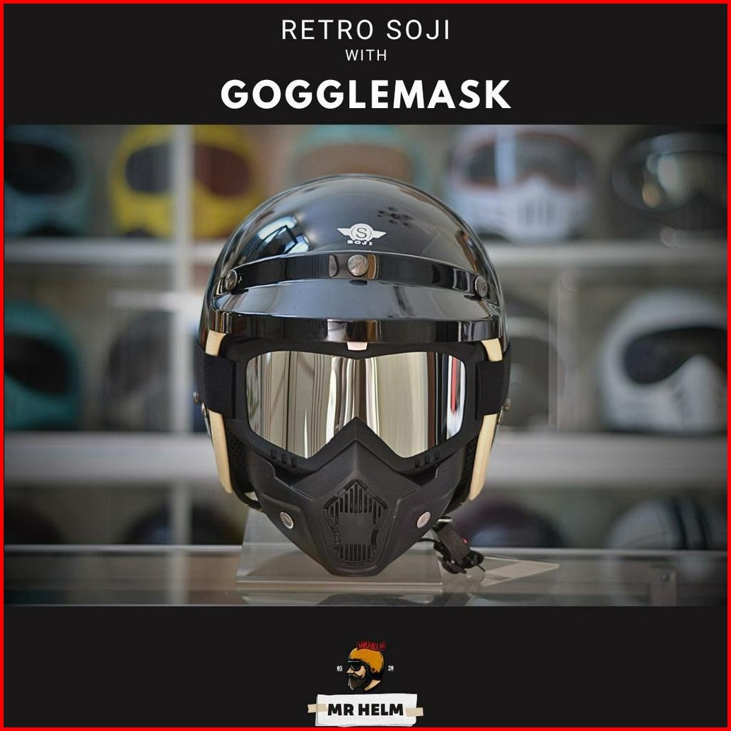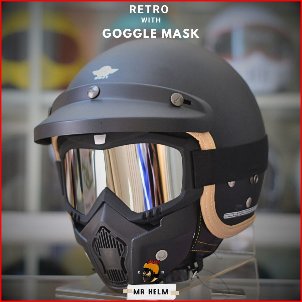 Helm Bogo Retro Soji Halfface With Gogglemask