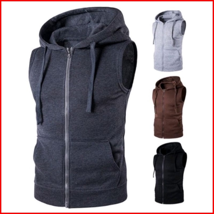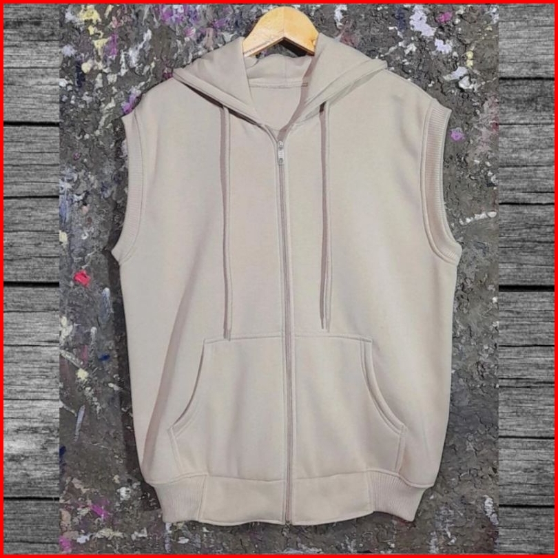 Rompi Zipper Pria Wanita Bahan Fleece Tebal Vest Hoodie