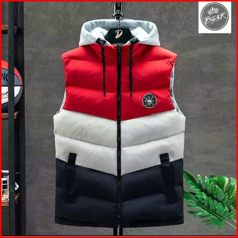 Best Seller - Jaket Rompi Pria 3d Parasut Anti Angin Tebal Motor Cowok Keren Model Distro Bgsr
