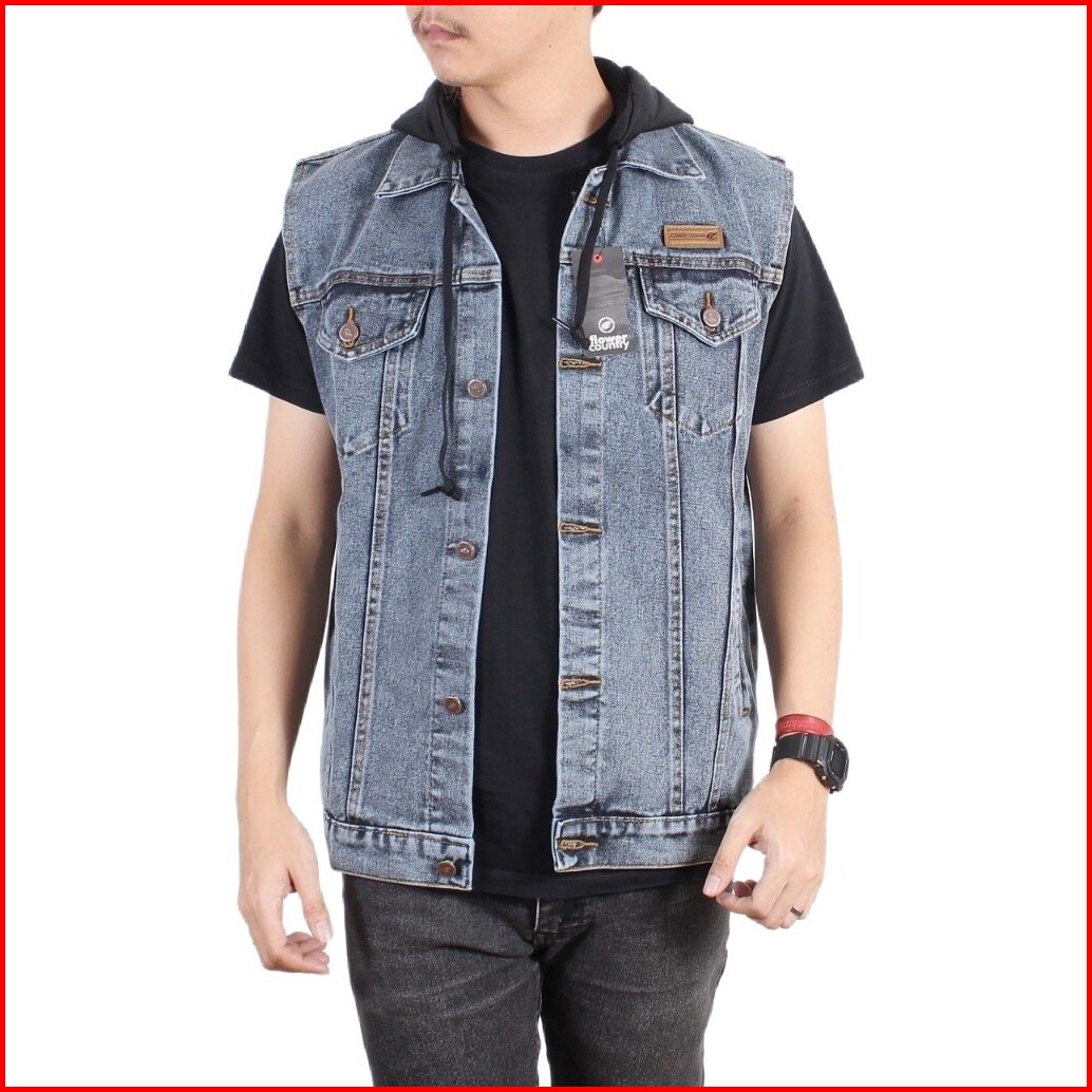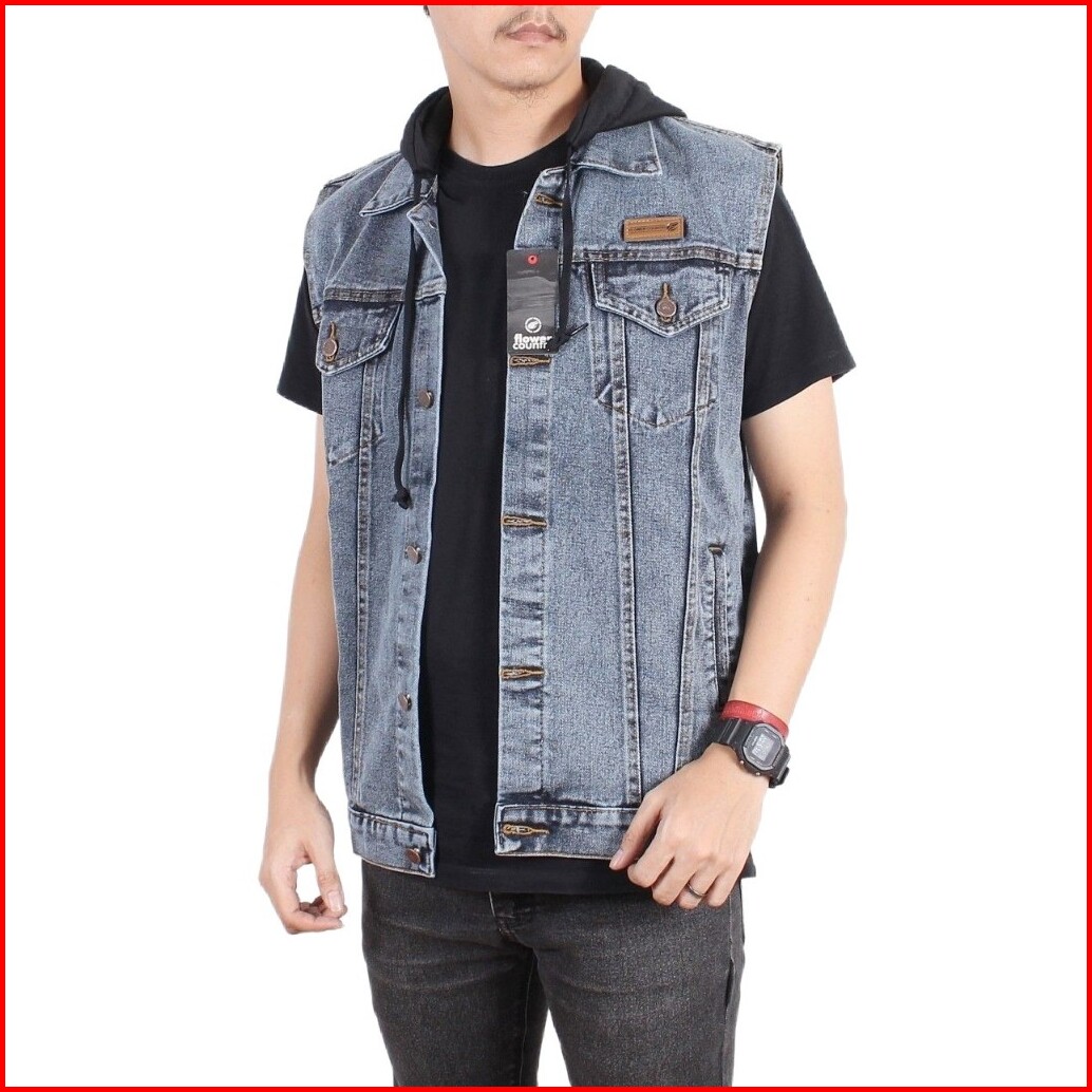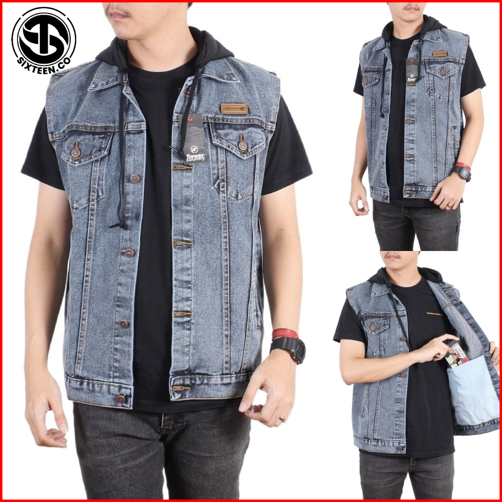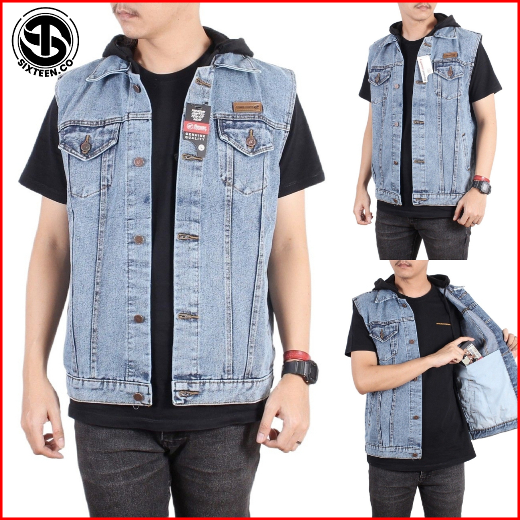 Sixten - Rompi Jeans Hoodie Pria Big Size Rompi Jeans Hoodie Cowok Rompi Lekmong