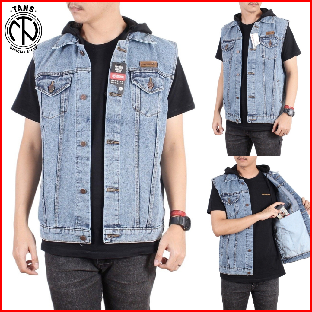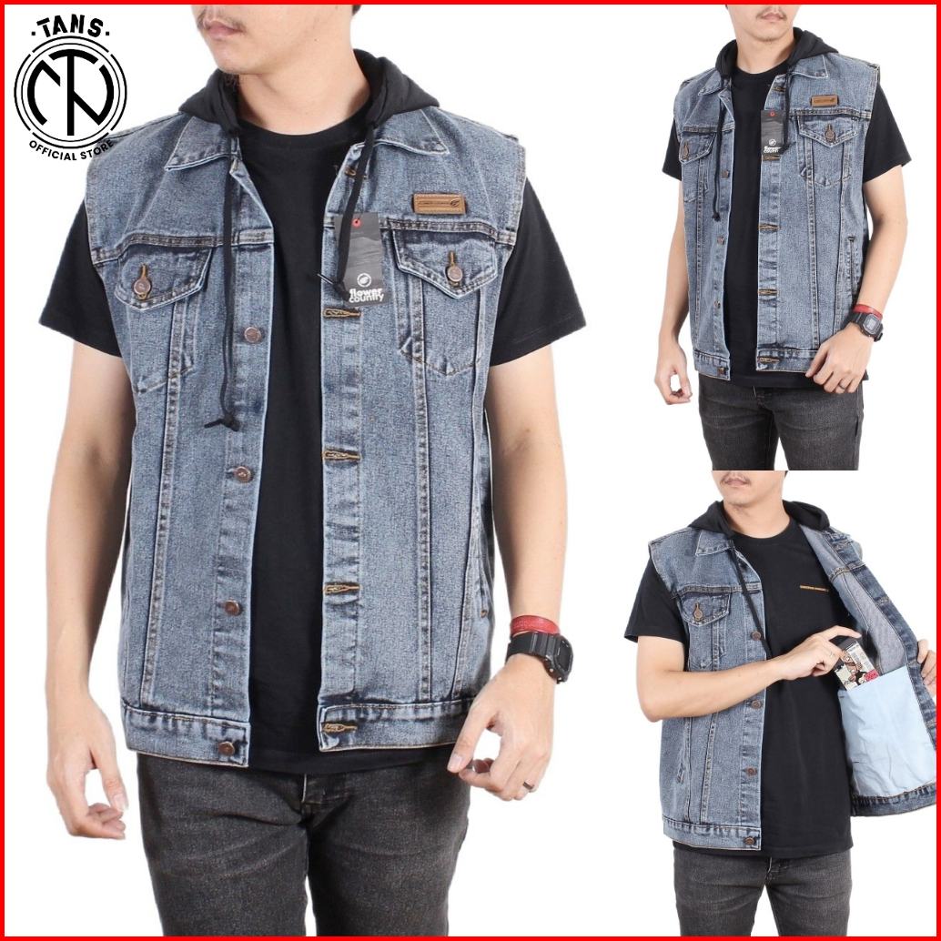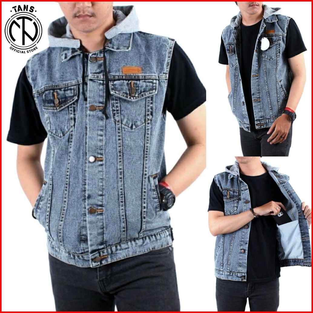 Tans - Rompi Jeans Hoodie Pria Big Size Rompi Denim Hoodie Cowok Oversize