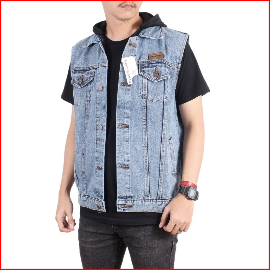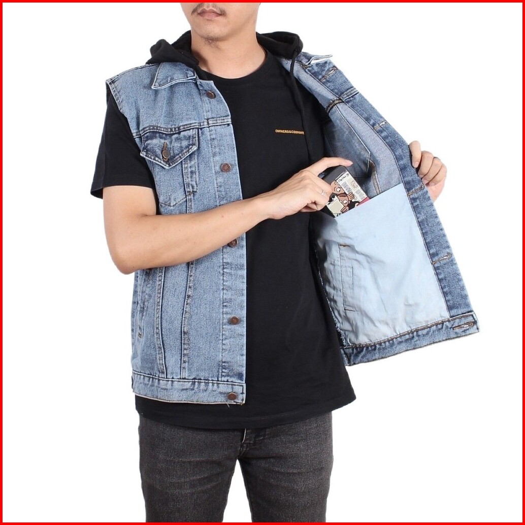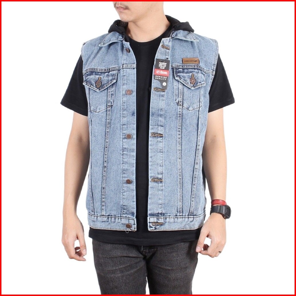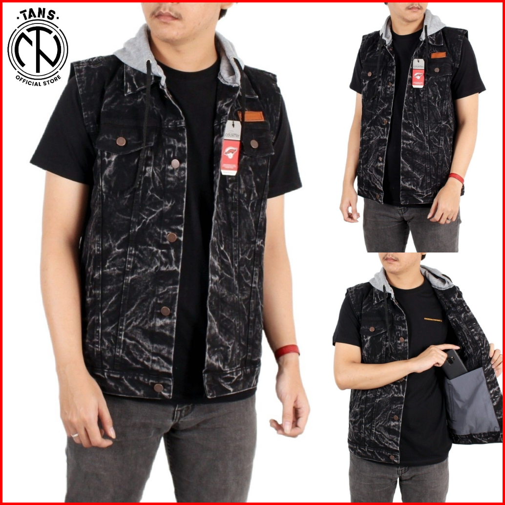 Tans - Rompi Jeans Hoodie Pria Big Size Rompi Denim Hoodie Cowok Oversize