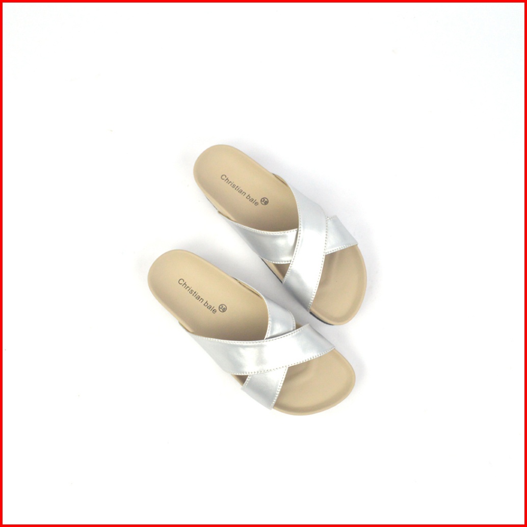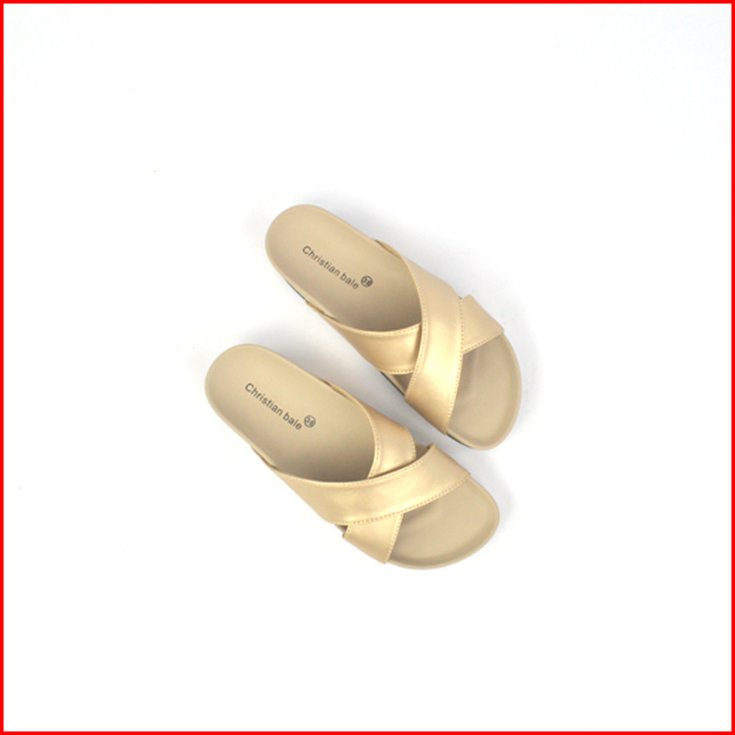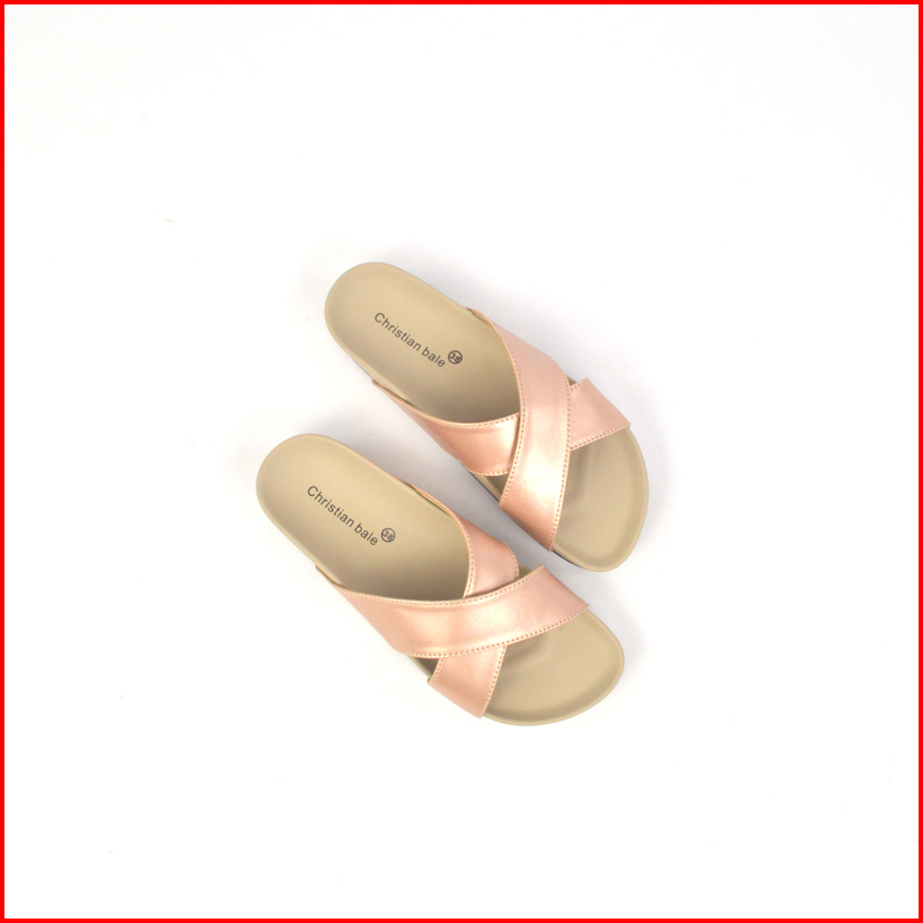 Christian Bale Jessica Sendal Flat Kulit Flatform Wanita Ban Dua Silang Casual Premium Original