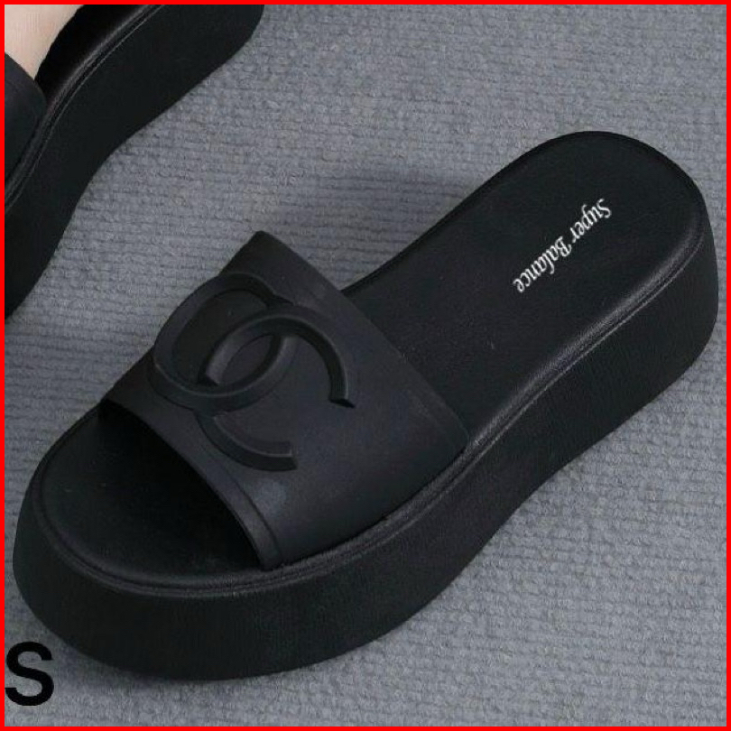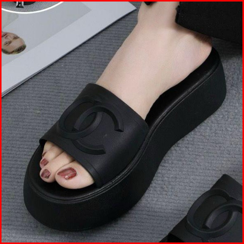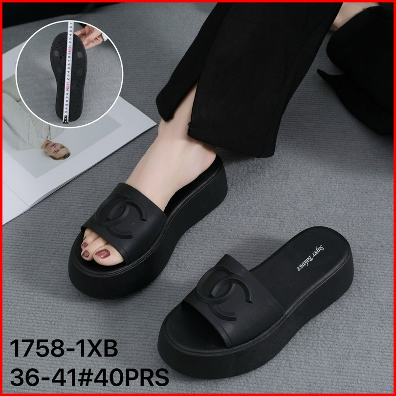 C Sandal Wanita 1758-1xb Wedges Balance Tebal 5cm Rubber Karet Fashion Import
