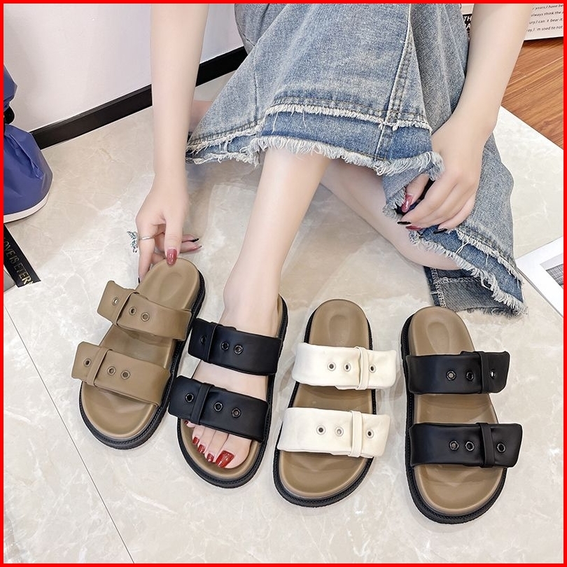 V999 - Sandal Double Strap Fashion Wanita Kekinian Sandal Santai Nyaman Dipake Sandal Wedges Wanita