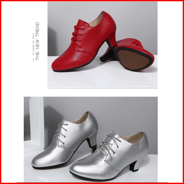 Hils Wanita 5cm Sepatu Dansa Wanita Sepatu Dansa Latin Sepatu Dansa Tumit Tengah Hak Tinggi Sol Lembut Sepatu Dansa Mode