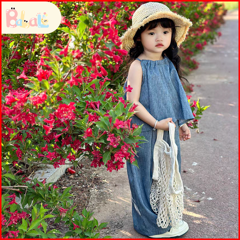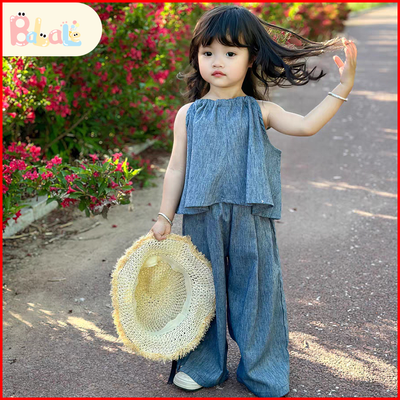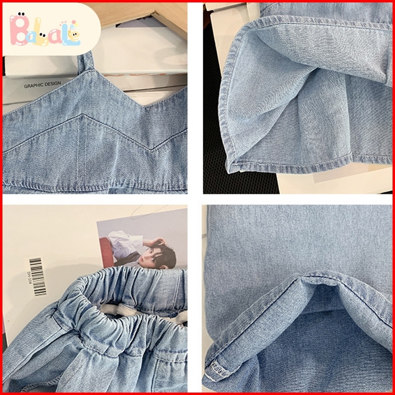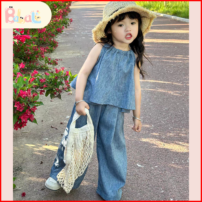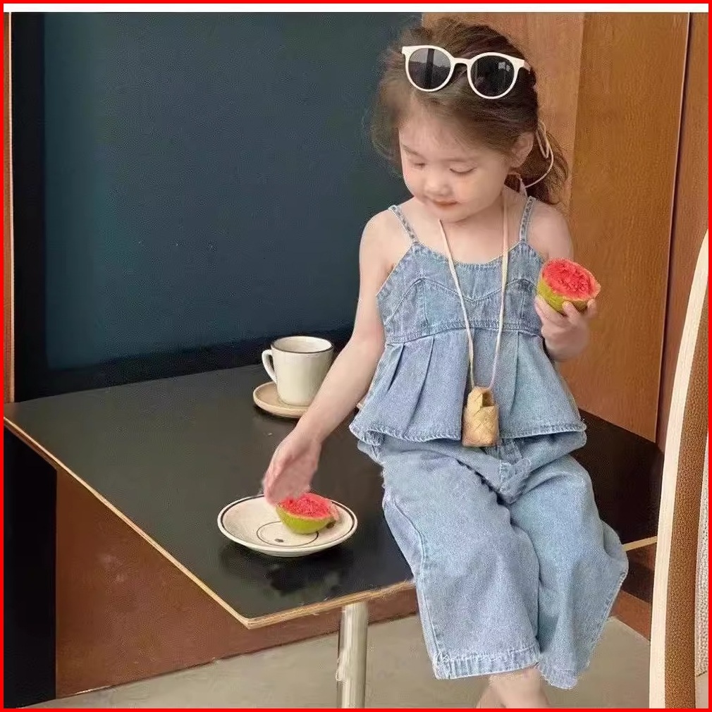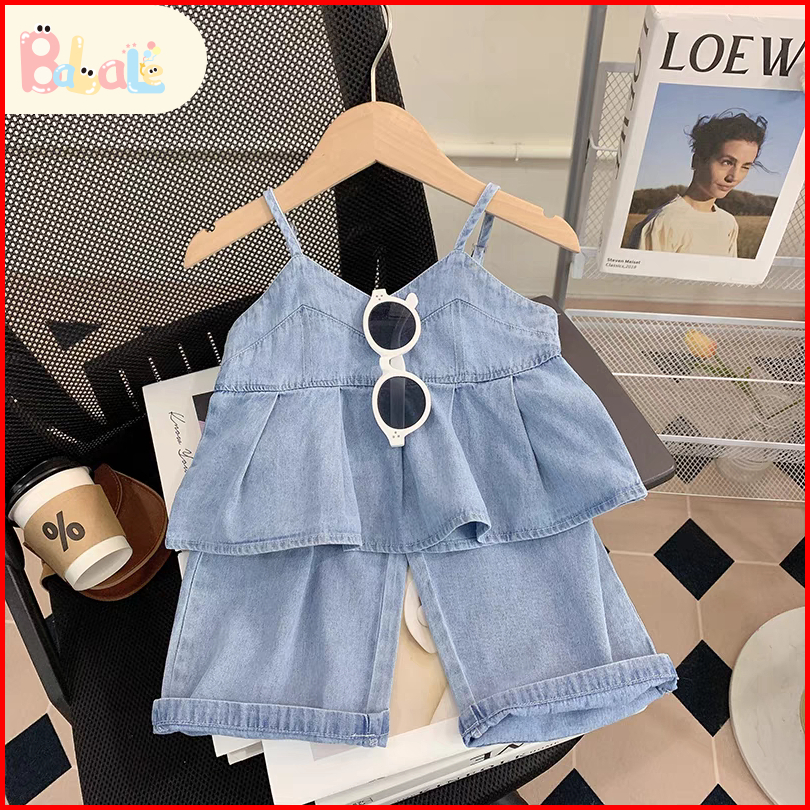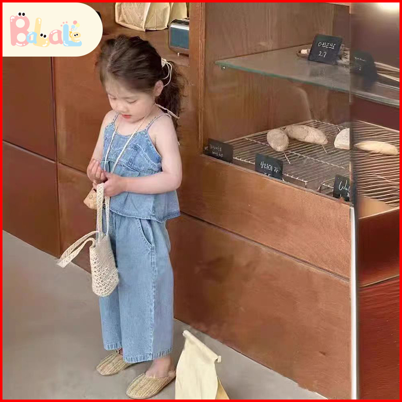 Setelan Denim Anak Perempuan Outfit Anak Perempuan Simple Stylish Setelan Atasan Tank Dan Celana Panjang 2-10 Tahun
