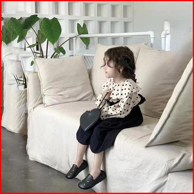 Oneset Anak Cewek Baju Set Anak Setelan Anak Perempuan Atasan Polkadots Lengan Panjang Celana Culottes Panjang Setelan A