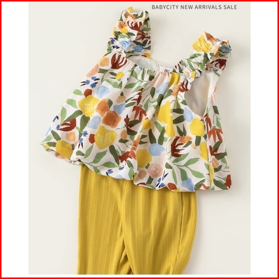 Setelan Anak Perempuan Gaya Kasual Tanpa Lengan Motif Bunga