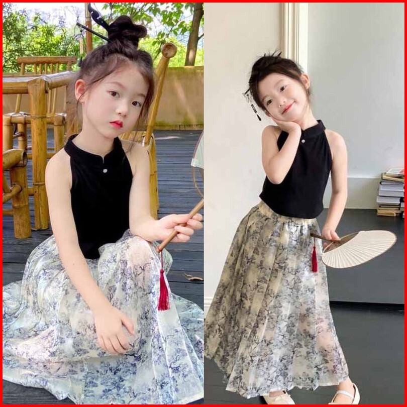 Titan Halter Set Setelan Baju Anak Perempuan Baju Jalan Anak Rok Anak Perempuan