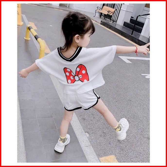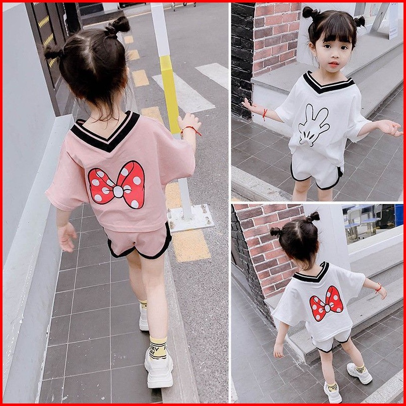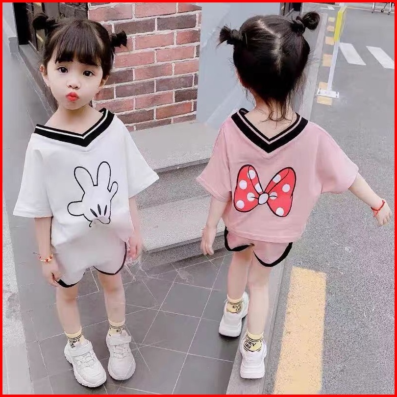 Js1-222 Setelan Pendek Anak Perempuan V Neck Baju Anak Cewek Balita Lucu One Set