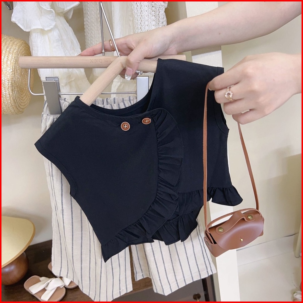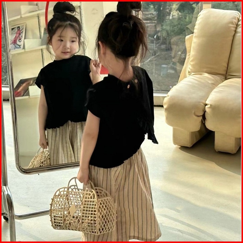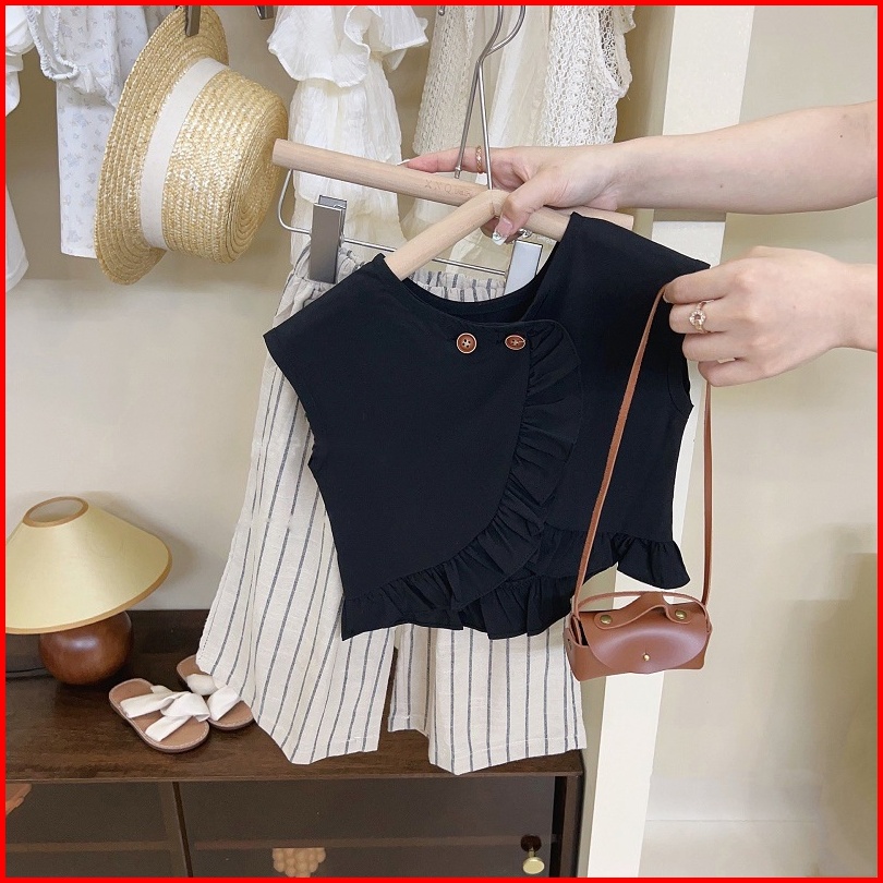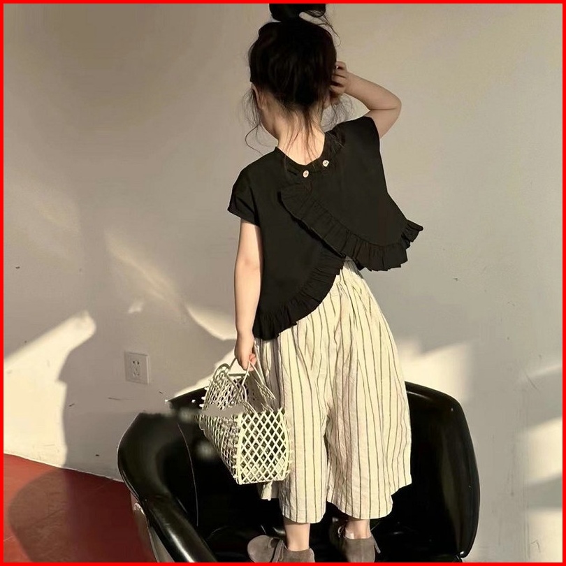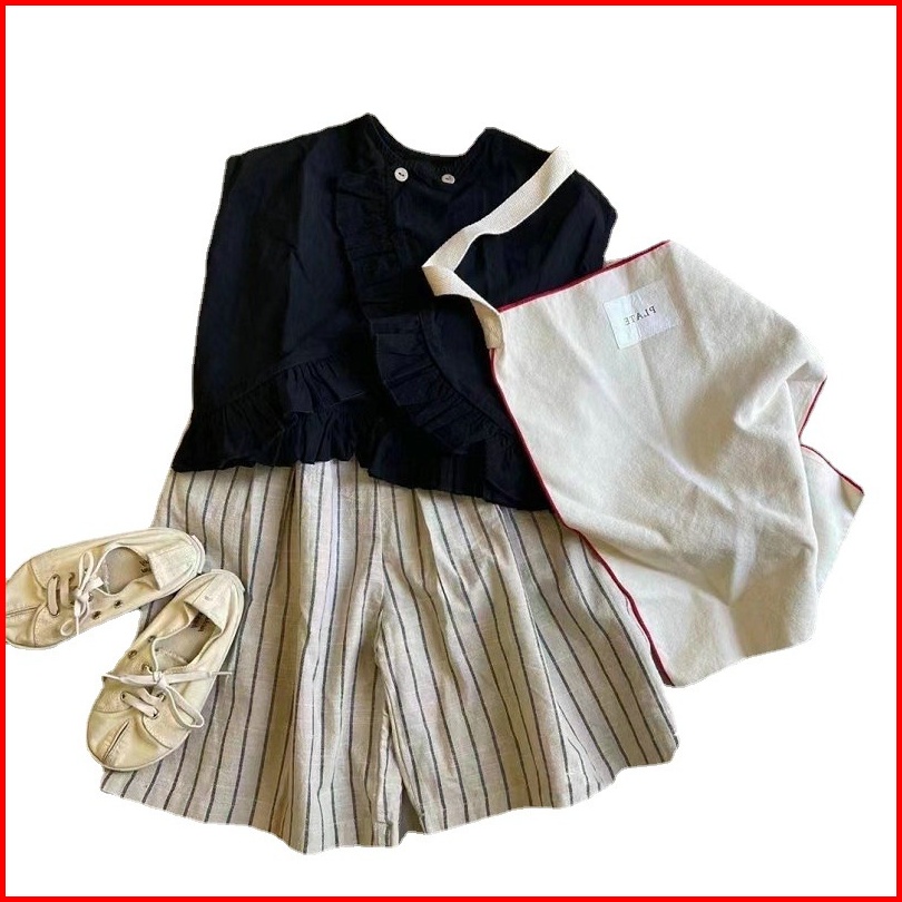 Setelan Anak Perempuan Import Variasi Kancing Renda Kulot Garis Terbaru Remple Tengah Fashionable
