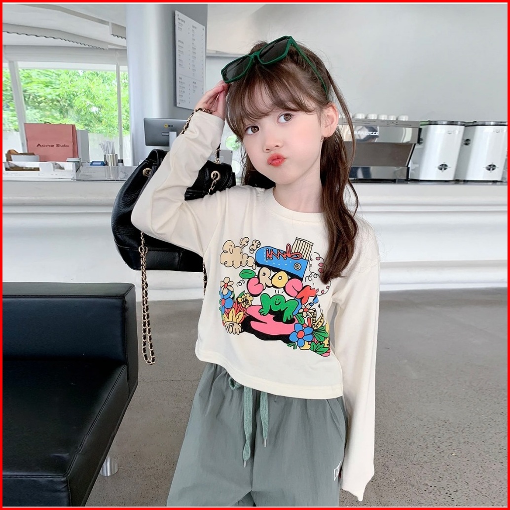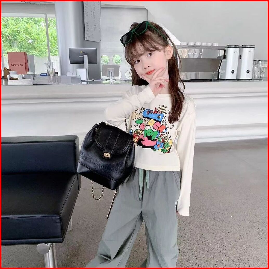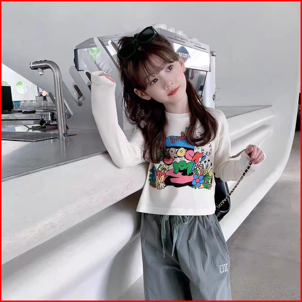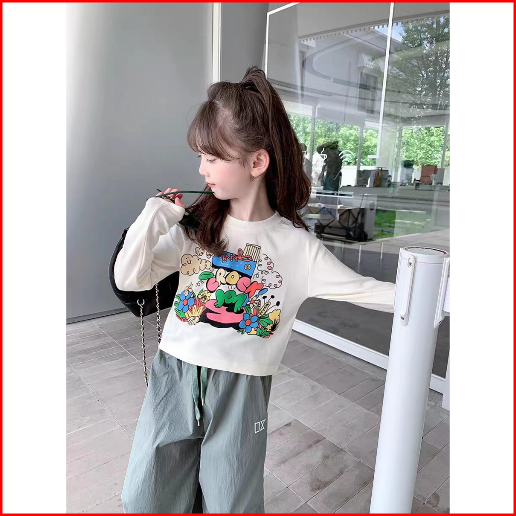 Kingogo Korean Style Setelan Cargo Anak Perempuan Atasan Motif Cartoon Bahan Katun Lengan Panjang Celana Panjang Bahan C