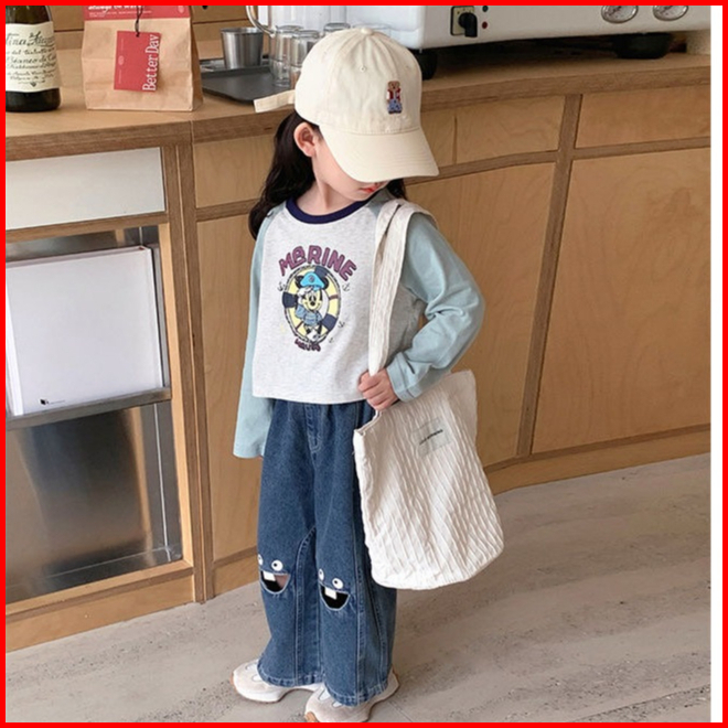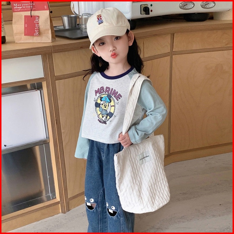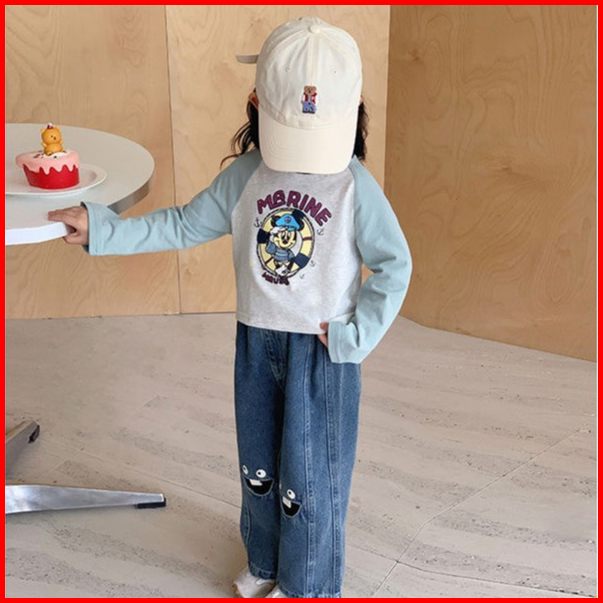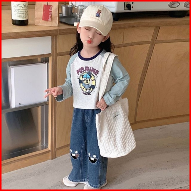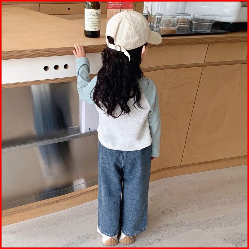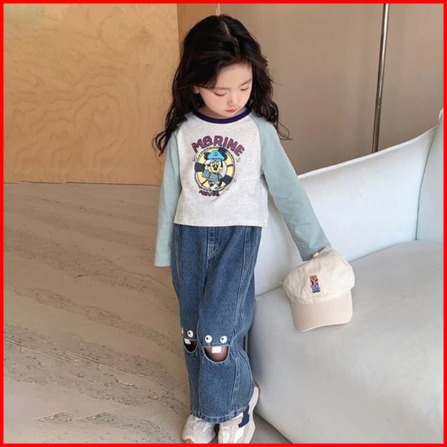 Makabaka Style Terbaru Setelan Anak Kaos 2-8 Tahun Perempuan T-shirt Lengan Panjang Bahan Katun Celana Jeans Panjang Mot