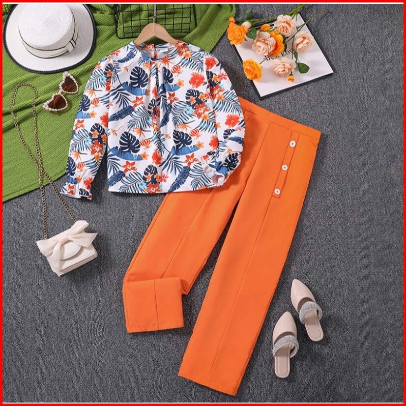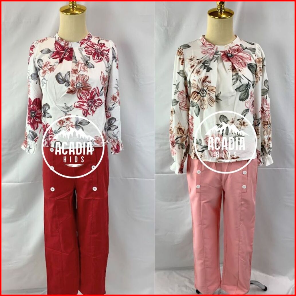 Acadiakids - Setelan Anak Perempuan Kanaya Atasan Blouse Motif Bunga Celana Panjang Premium Terbaru Terlaris