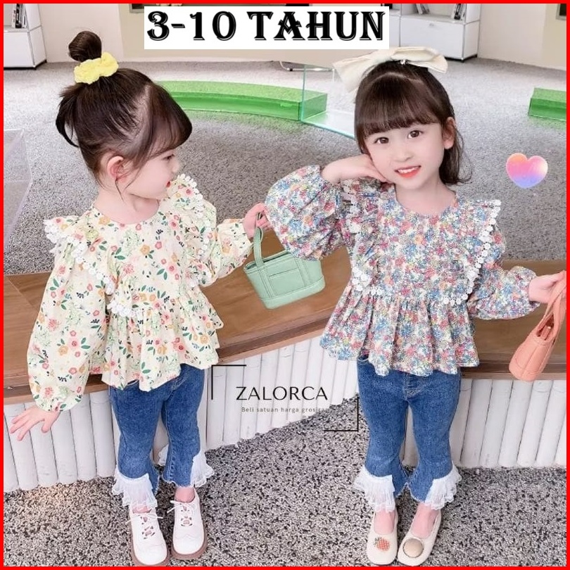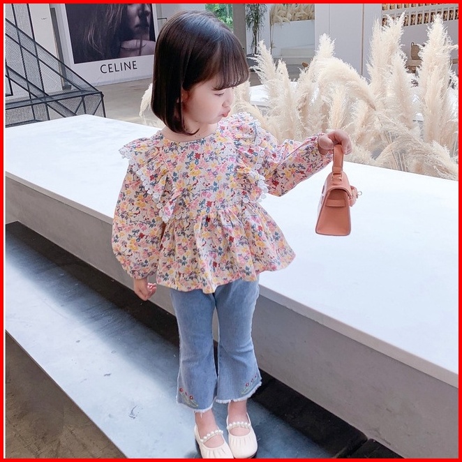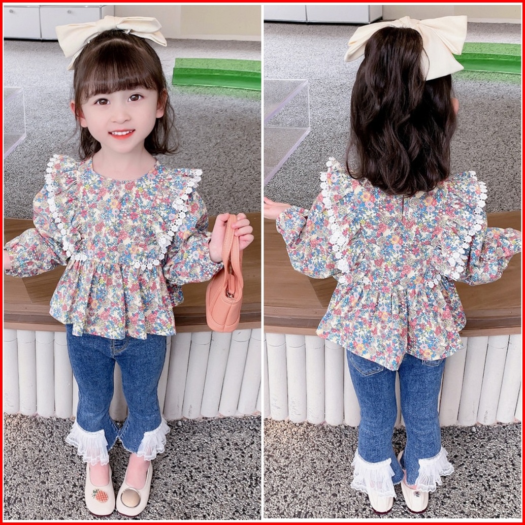 Kidsfo-83 103 Setelan Set Anak Korea Perempuan Bunga Celana Jeans Lace