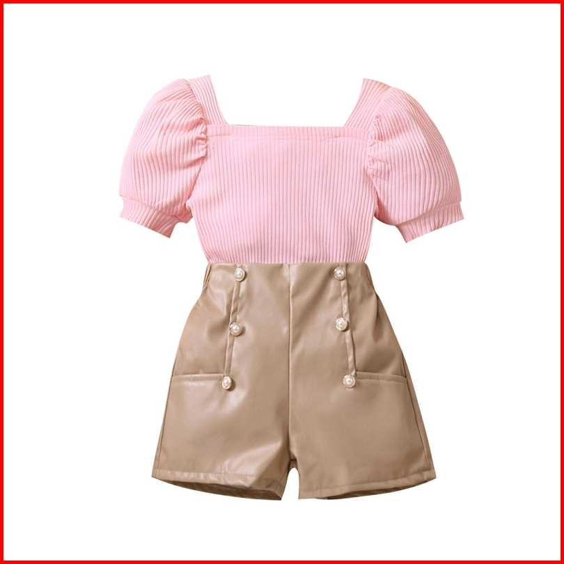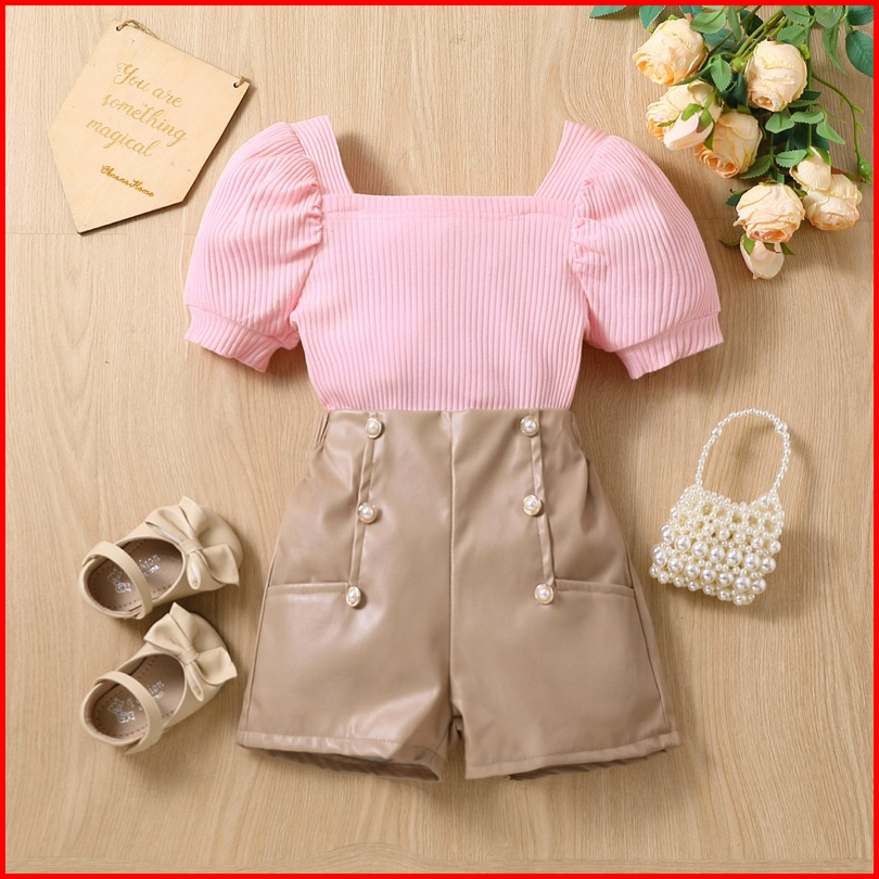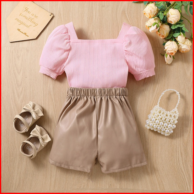 0-5th Setelan Anak Perempuan Terkini Atasan Celana Highwaist Pink Skin