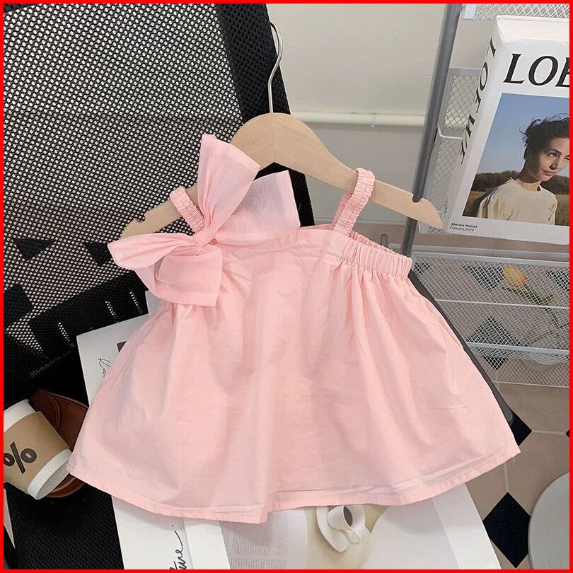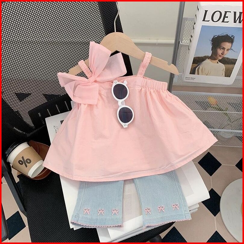 Kidsfashionkoleksi Setelan Pitalis Jeans Pita Bahu In Soft Pink Anak Perempuan