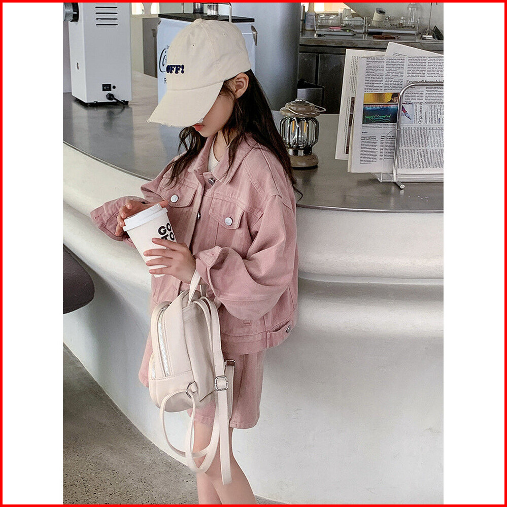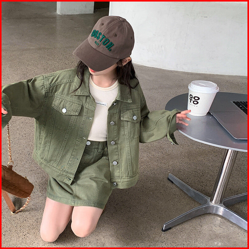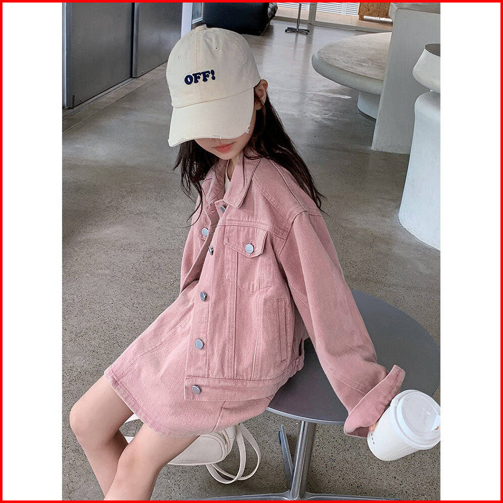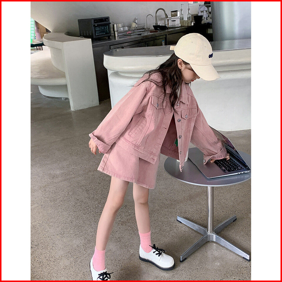 5071029 - Setelan Baju Jaket Lengan Panjang Bawahan Rok Pendek Jeans Fashion Anak Perempuan - Motif Button Line