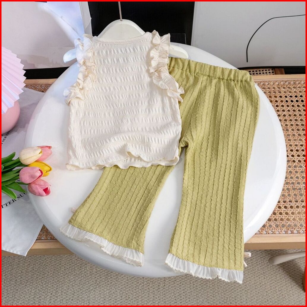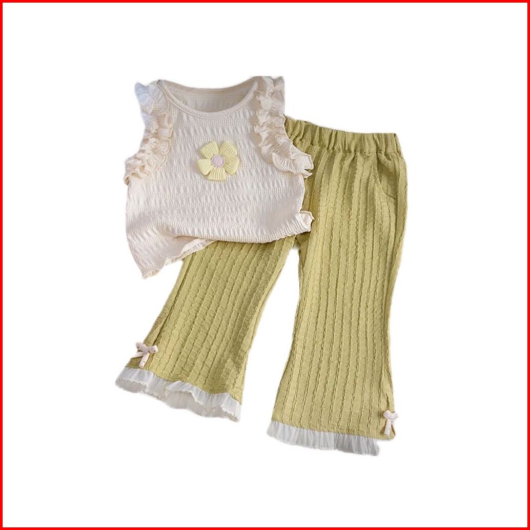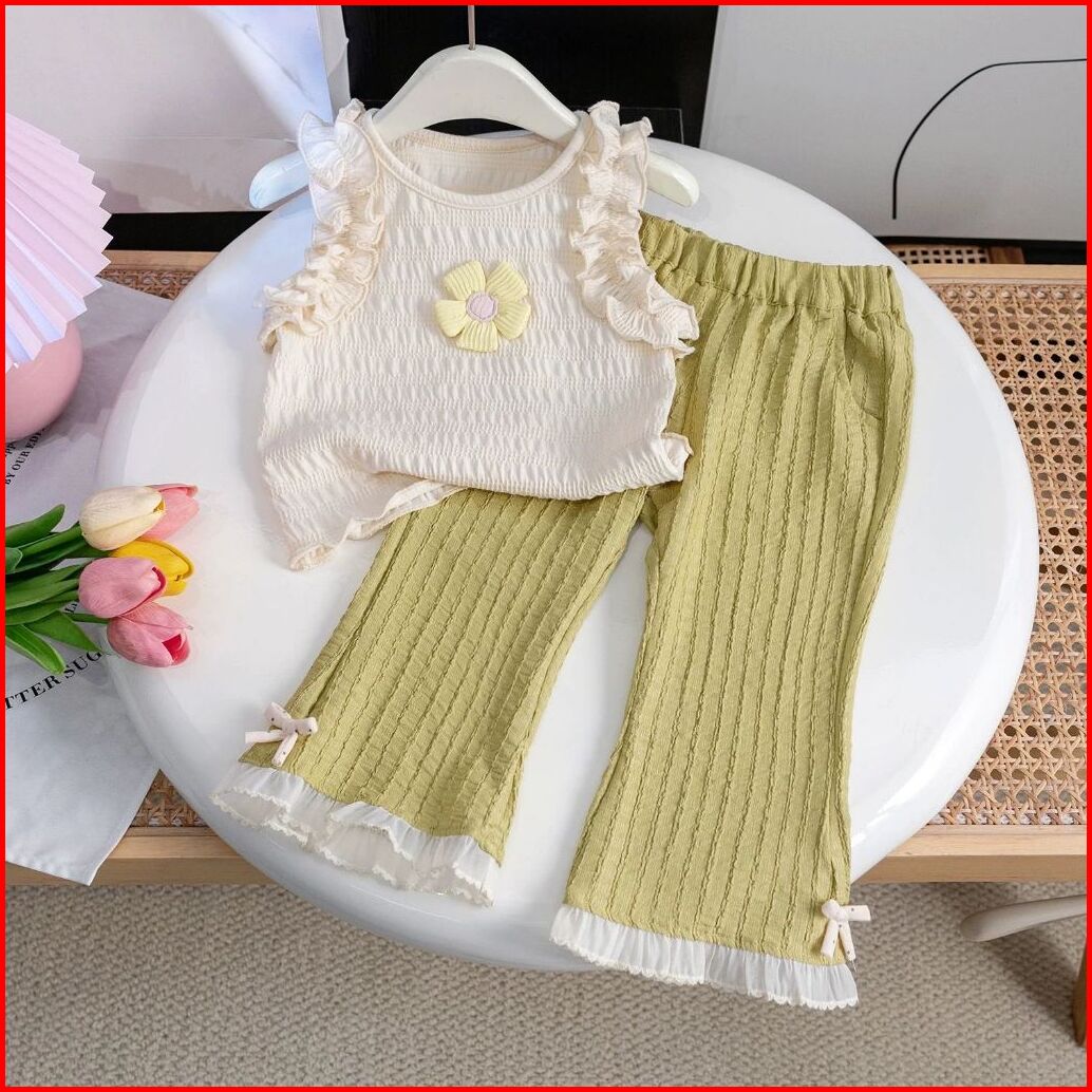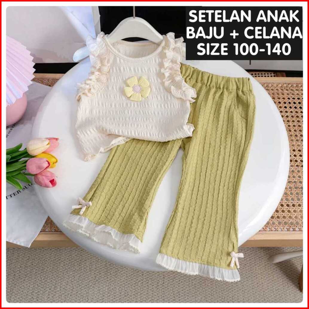 Loli-jkt Bs- 667 Setelan Anak Tanktop Bunga Timbul Hijau Artichoke Size 100-140