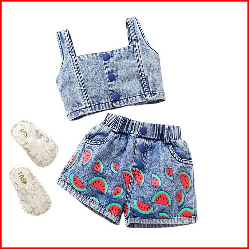 0-5th Setelan Premium Tebal Anak Perempuan Crop Denim