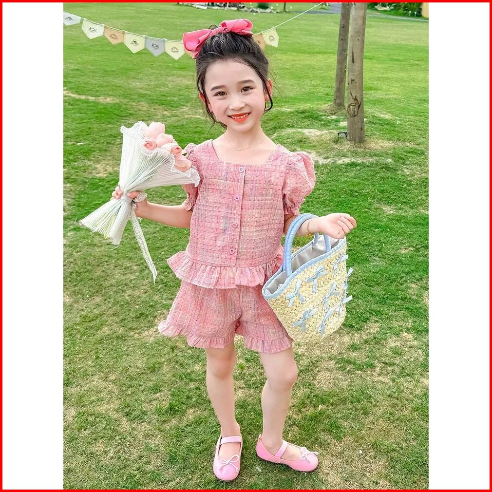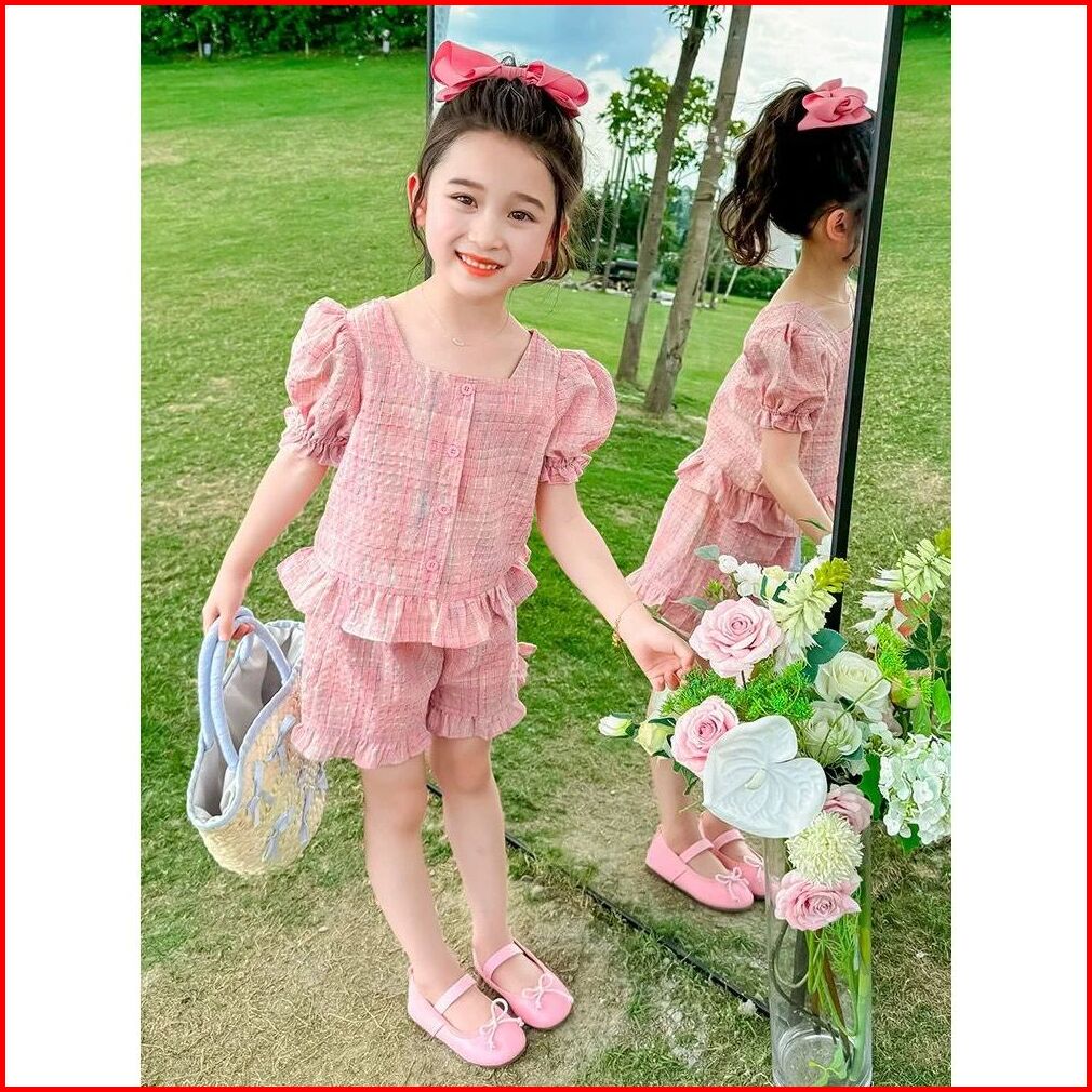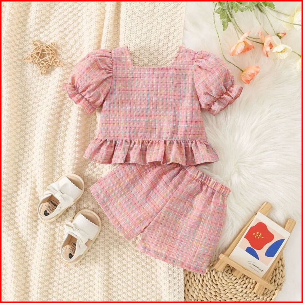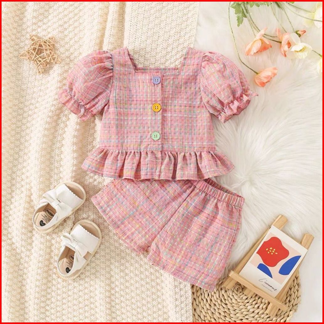 Kidsfashionkoleksi Setelan Top Pants Pink Dastia Sleeves Raffle Plaid Anak Perempuan