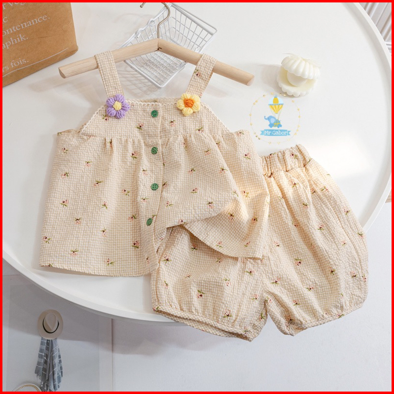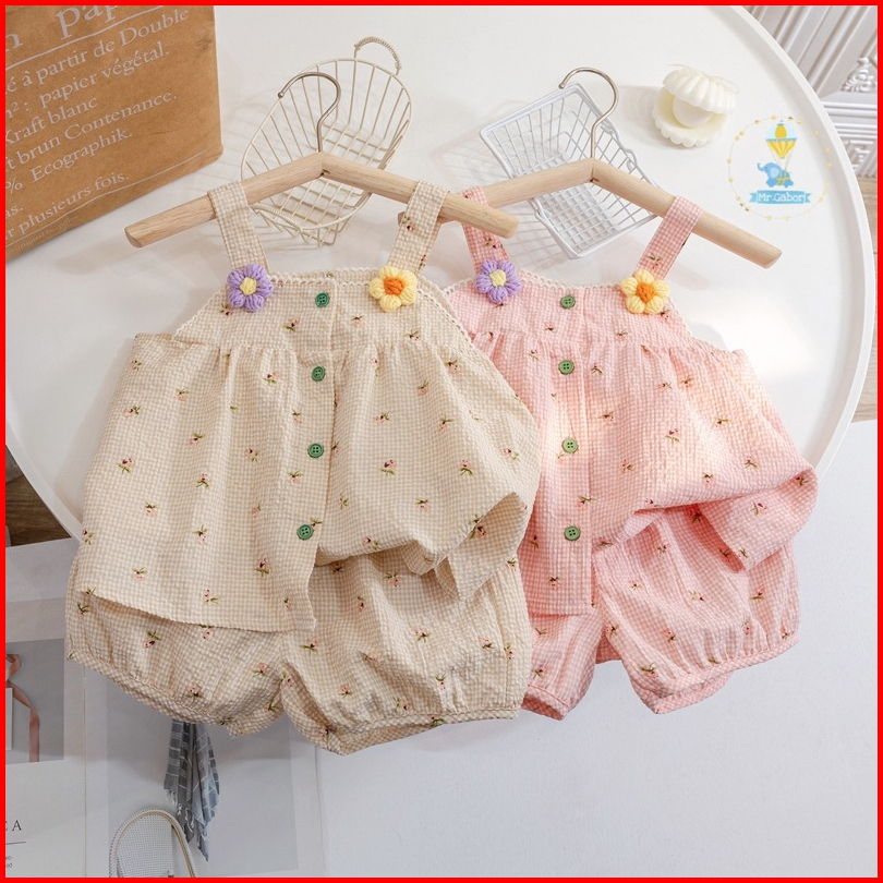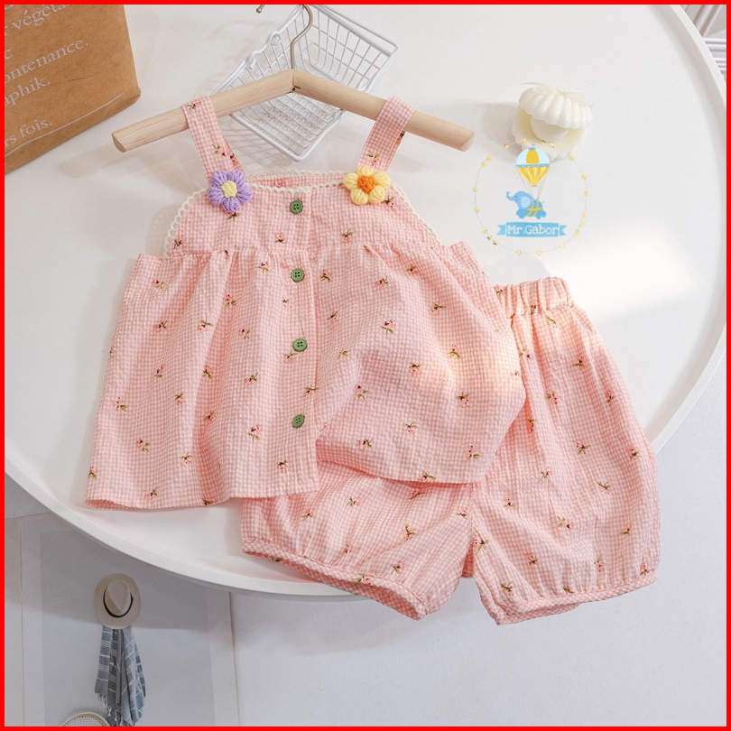 Mr.gabor Setelan Anak Perempuan Tanktop Kancing Dan Celana Pendek Rose Set