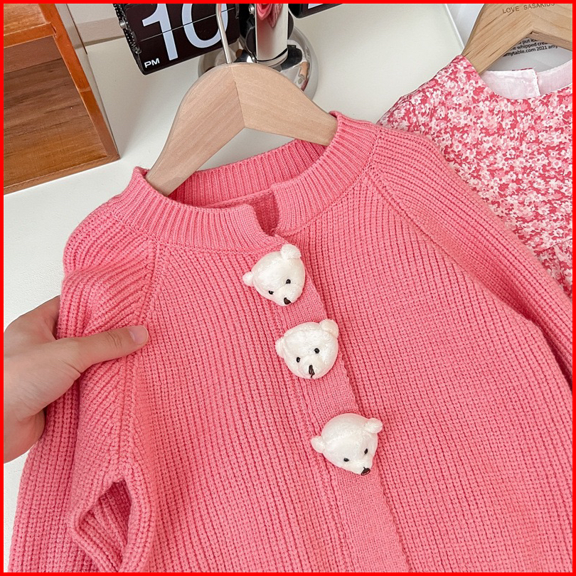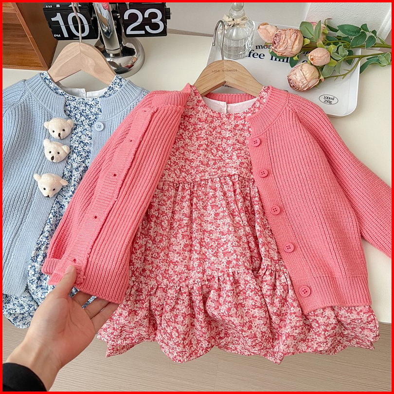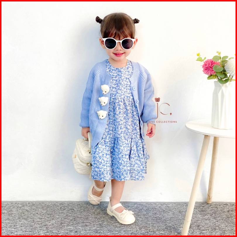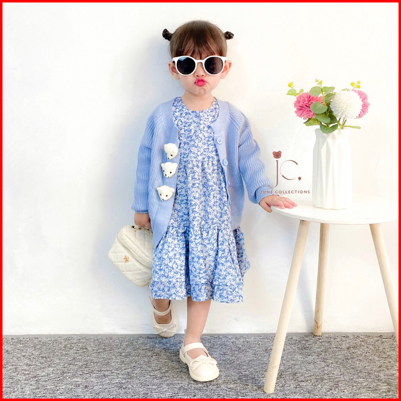 Junecollections Setelan Mini Dress Jaket Rajut Anak Perempuan - Motif Abstract Flowers 607