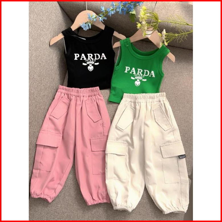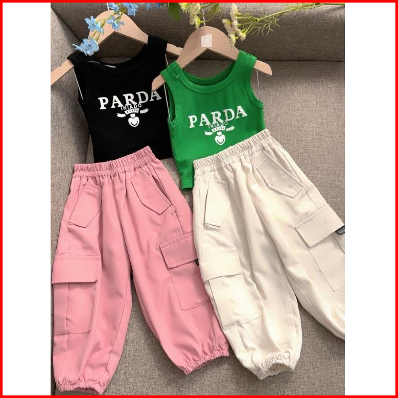 Kidsfashionkoleksi Atasan Tanktop Dan Celana Cargo Anak Perempuan Korean Style
