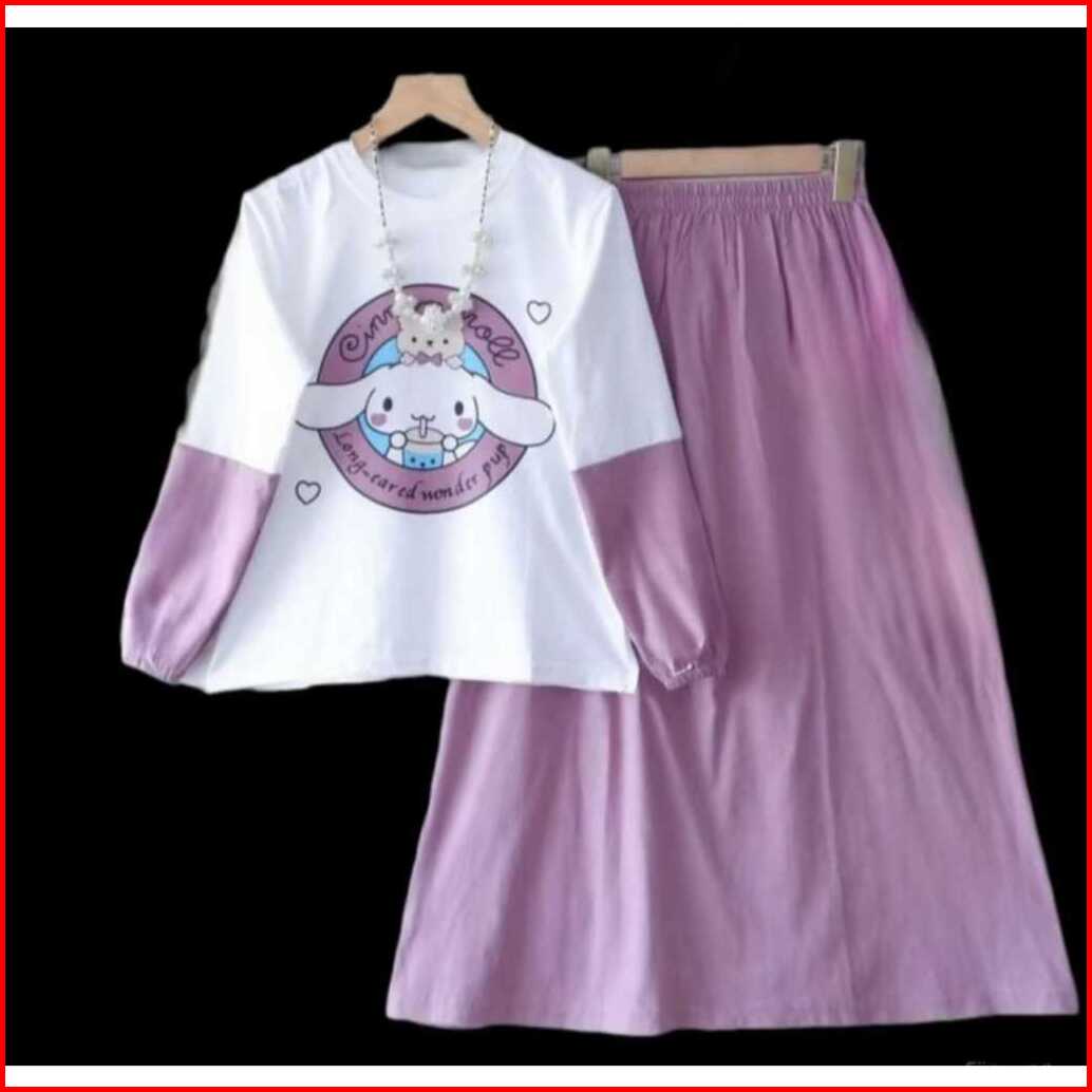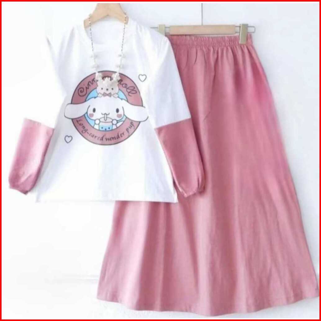 Setelan Baju Muslim Anak Bahan Crinkle Airflow Dan Rok Cinamoral Set Kids Set Rok Anak Motif Lucu Bahan Crinkle Airflow