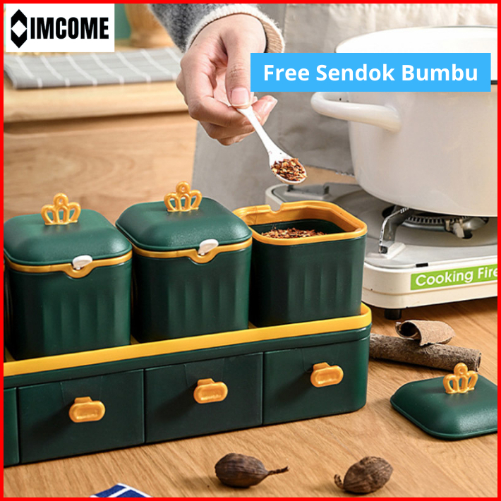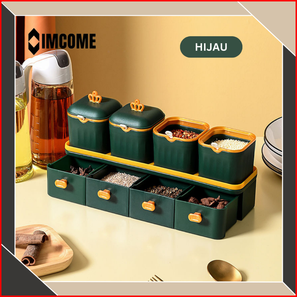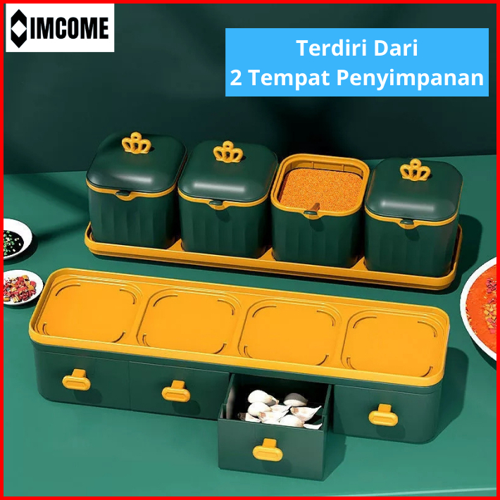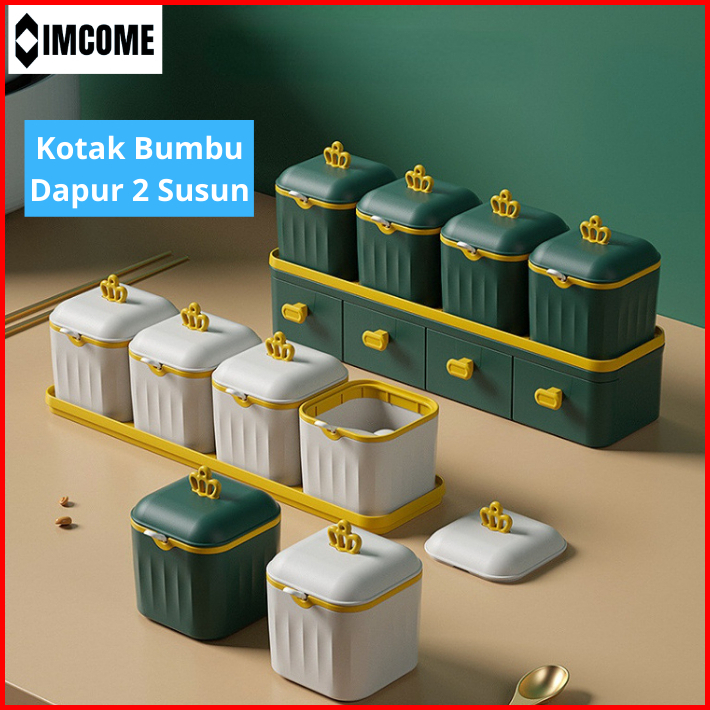 Imcome Rak Bumbu Dapur 2 Susun Tingkat Kotak Tempat Penyimpanan Bumbu Dapur Set Wadah Bumbu Bawang Minimalis Serbaguna 4