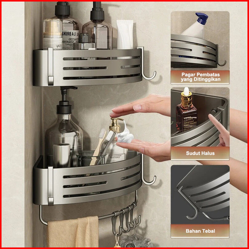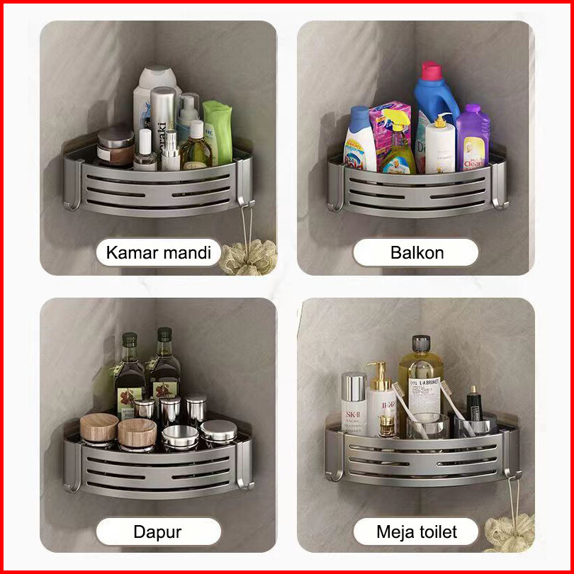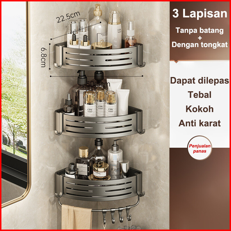 Rak Sudut Kamar Mandi 2 Lapis Tanpa Lubang Rak Organizer Kamar Mandi Rak Organizer Toilet Cr Rak Shower Space Serbaguna