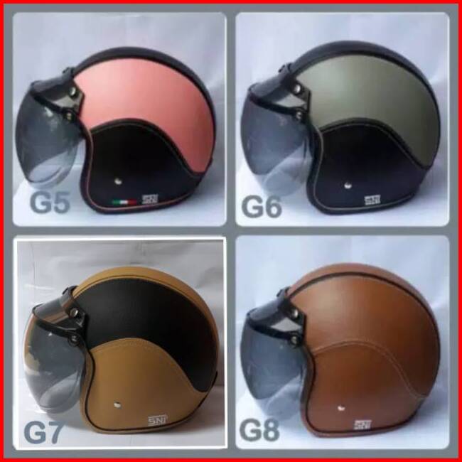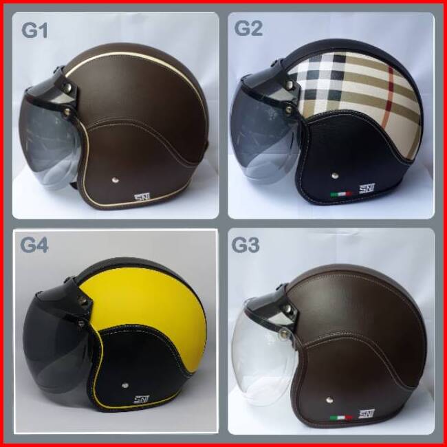 Helm Bogo Retro Dewasa Cat Dan Kulit Sni Bonus Sarung