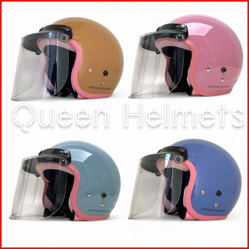 Helm Bogo Wanita Hijab Retro Dewasa Kaca Datar Bening Sni
