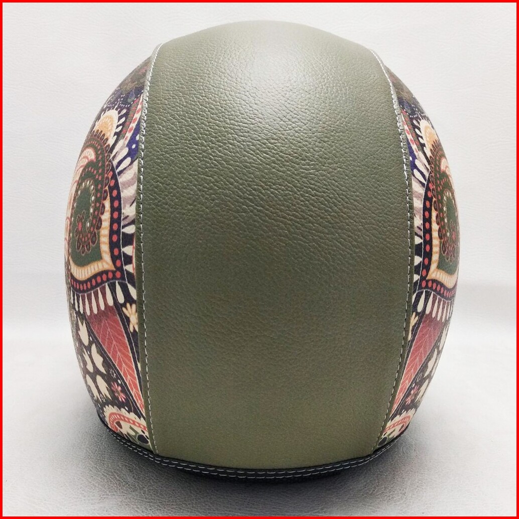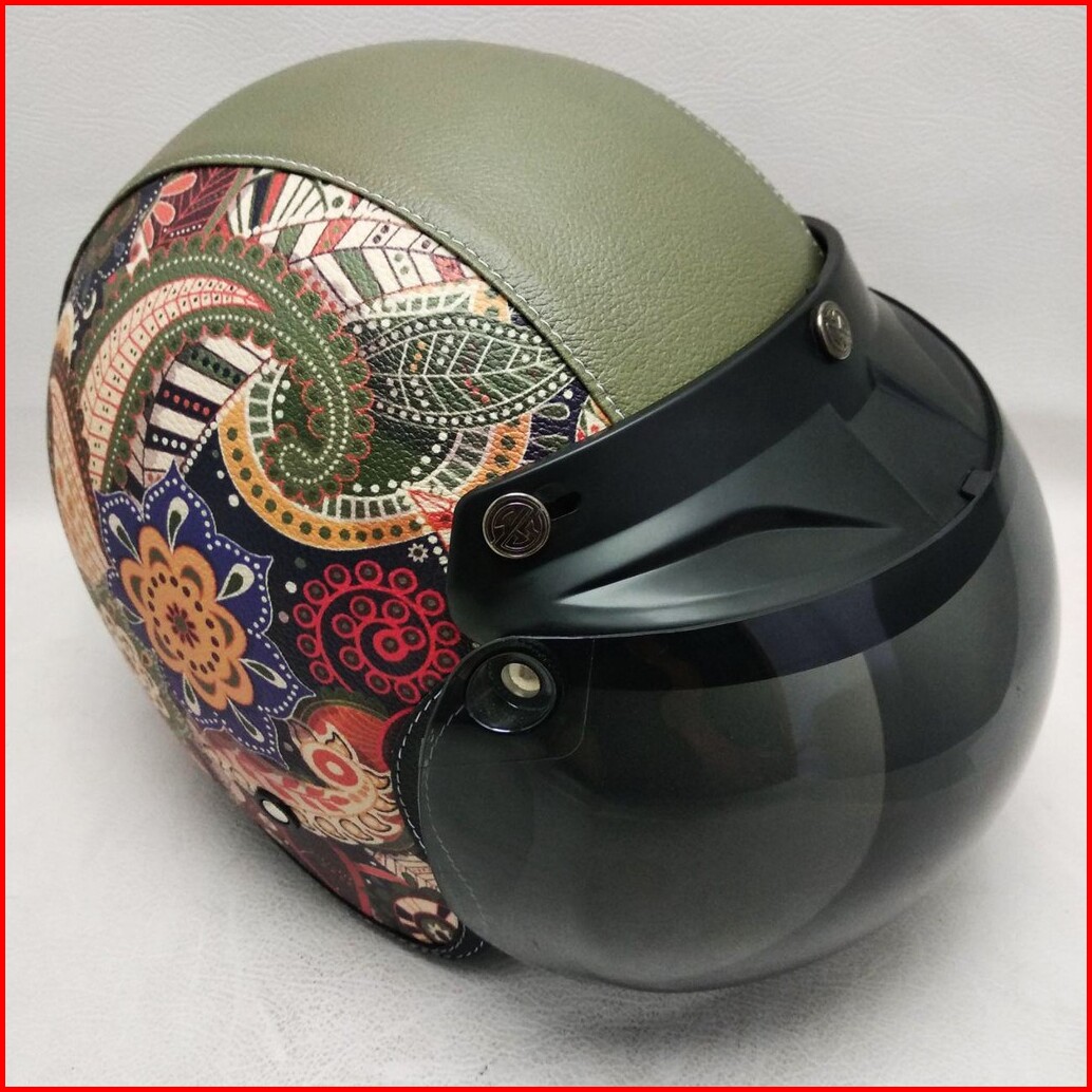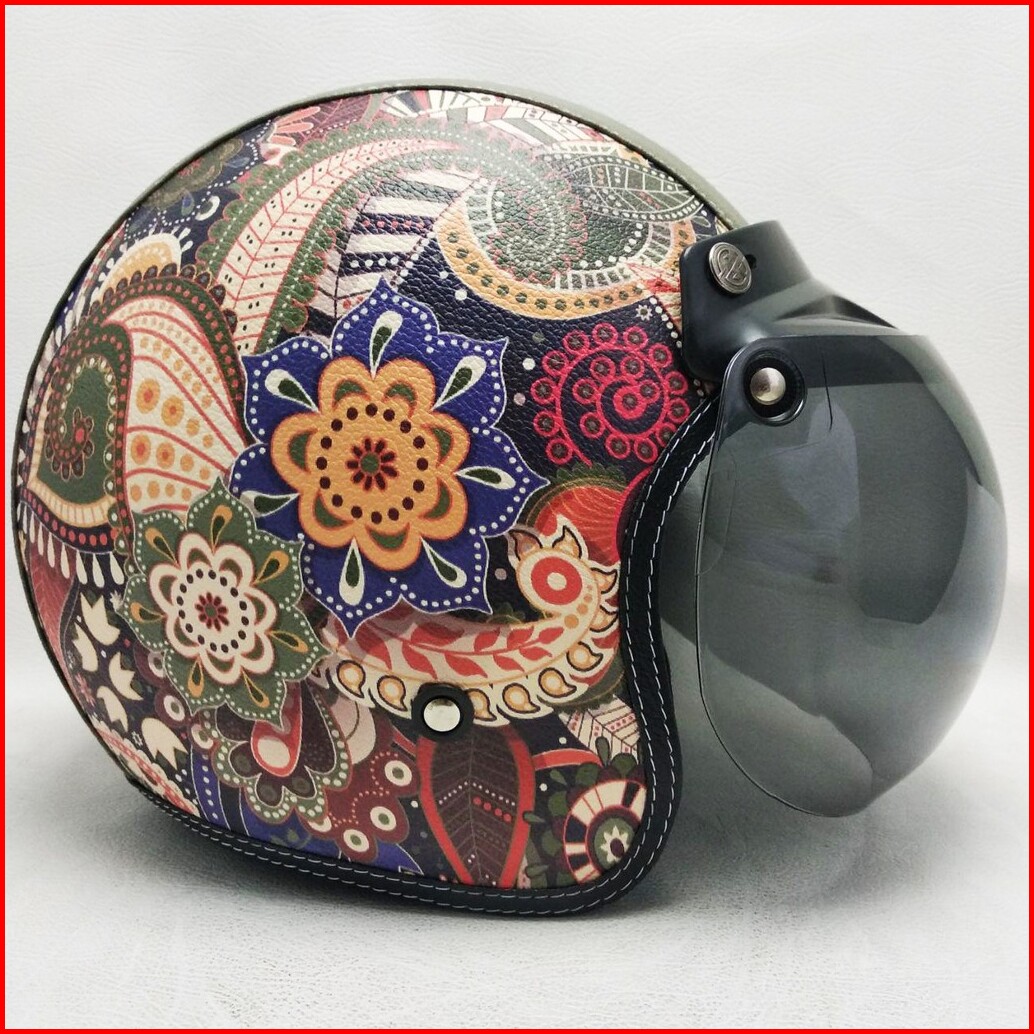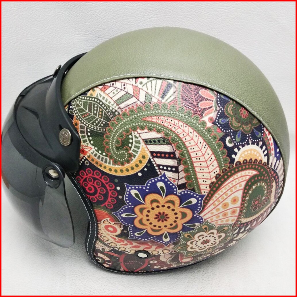 Helm Retro Bogo Kulit Motif Batik Etnis Klasik Kaca Bubble Halfface