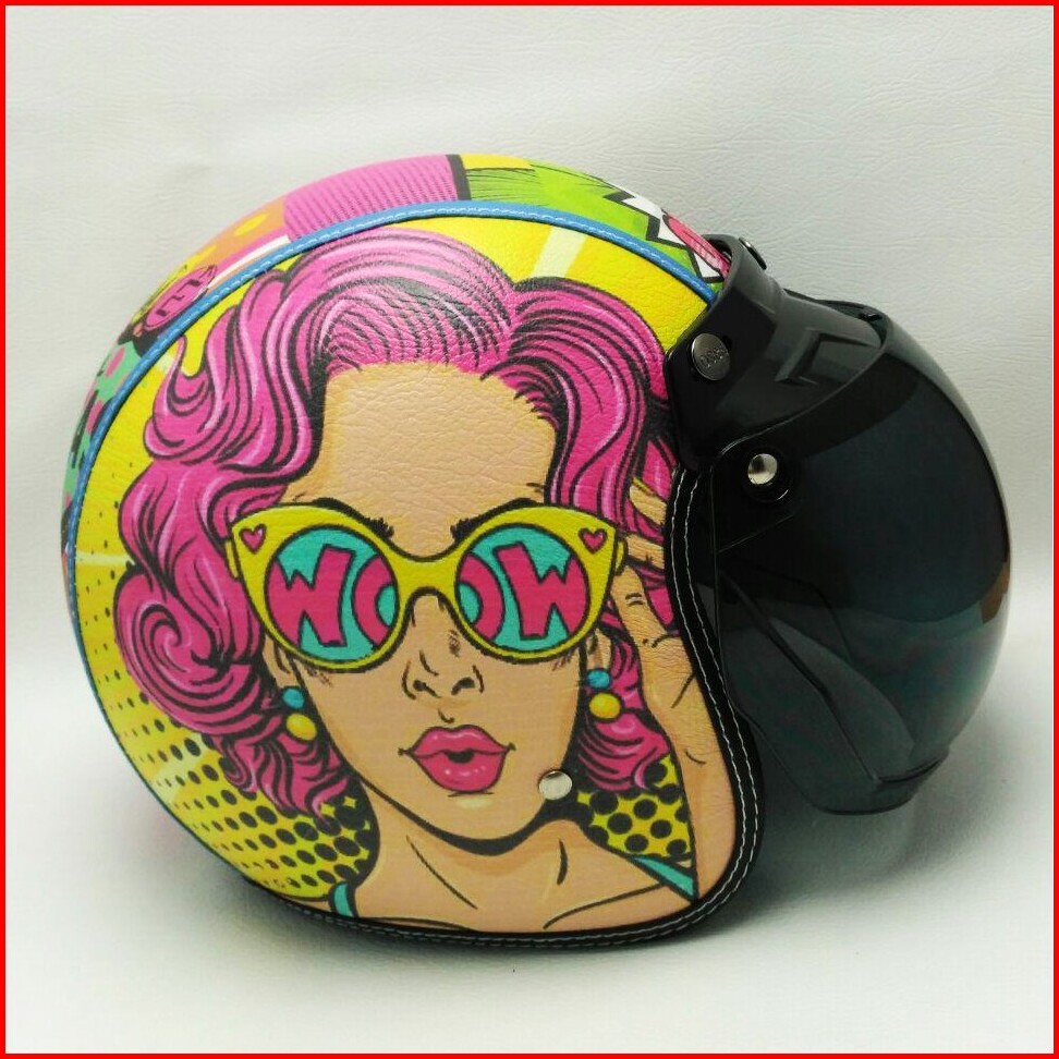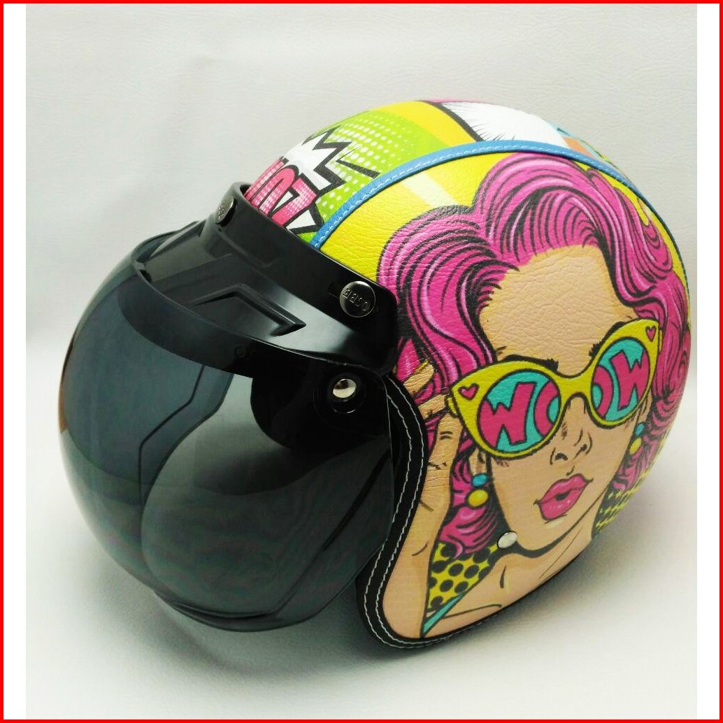 Helm Retro Bogo Kulit Perempuan Dewasa Las Vegas 1 Free Tambah Nama