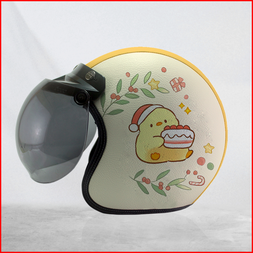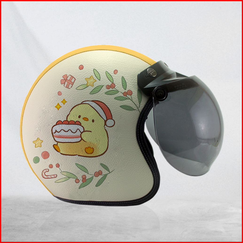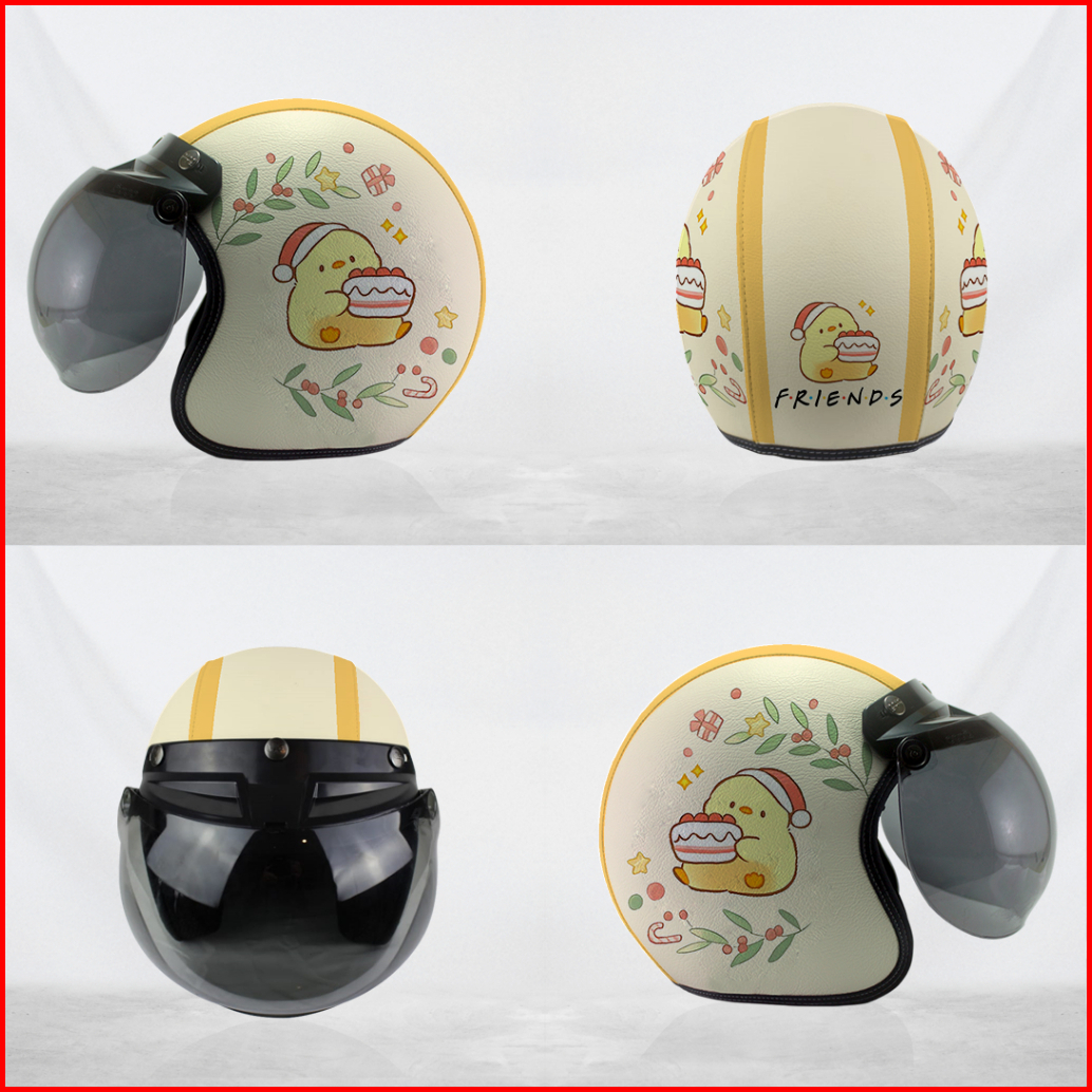 Helm Cewek Bogo Kulit Motif Christmas Friends Egg Lucu Kuning Kaca Bubble Smoke Sni Hallface