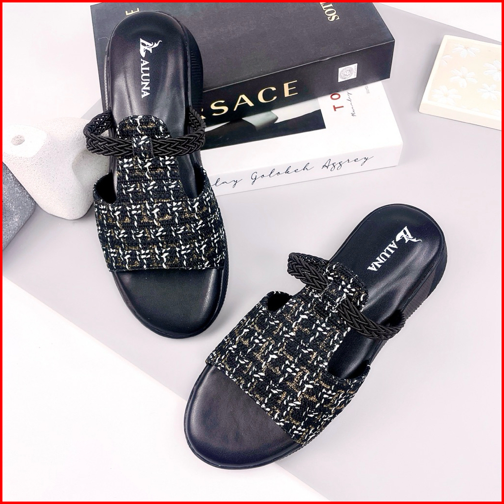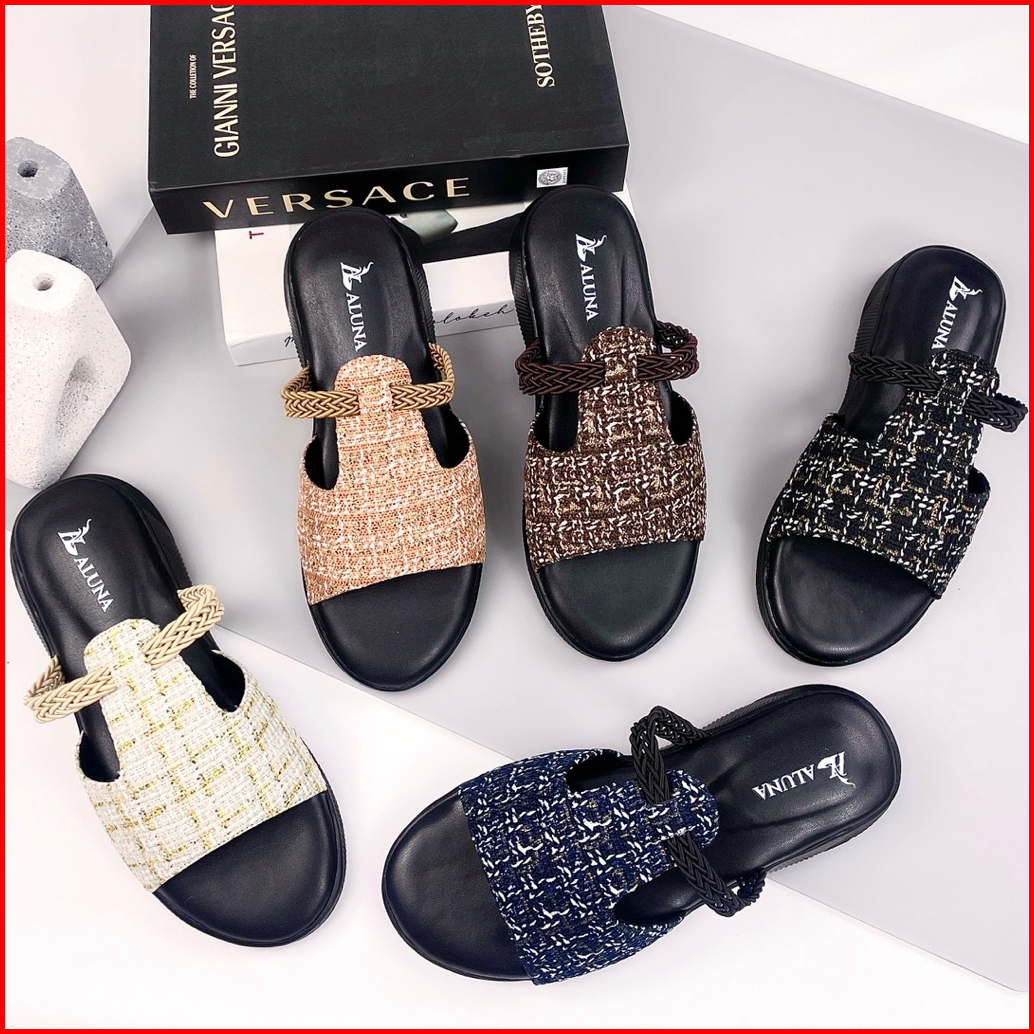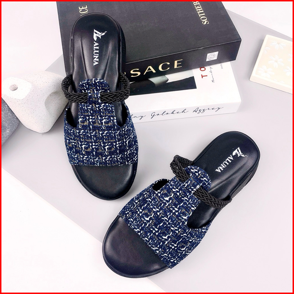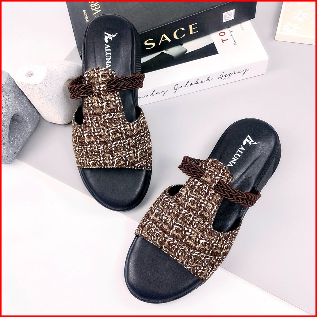 Aluna Wanda Sandal Slop Wanita Wedges Premium 3cm Elegan Simpel Kekinian Empuk Flat Pesta Casual Ori