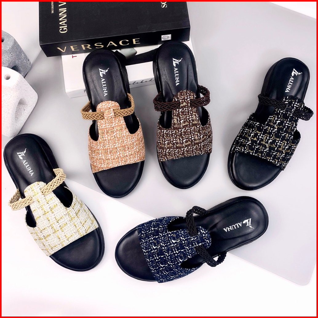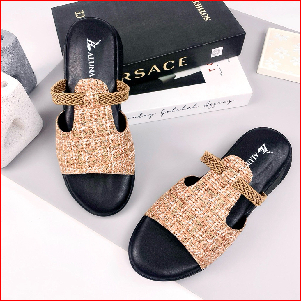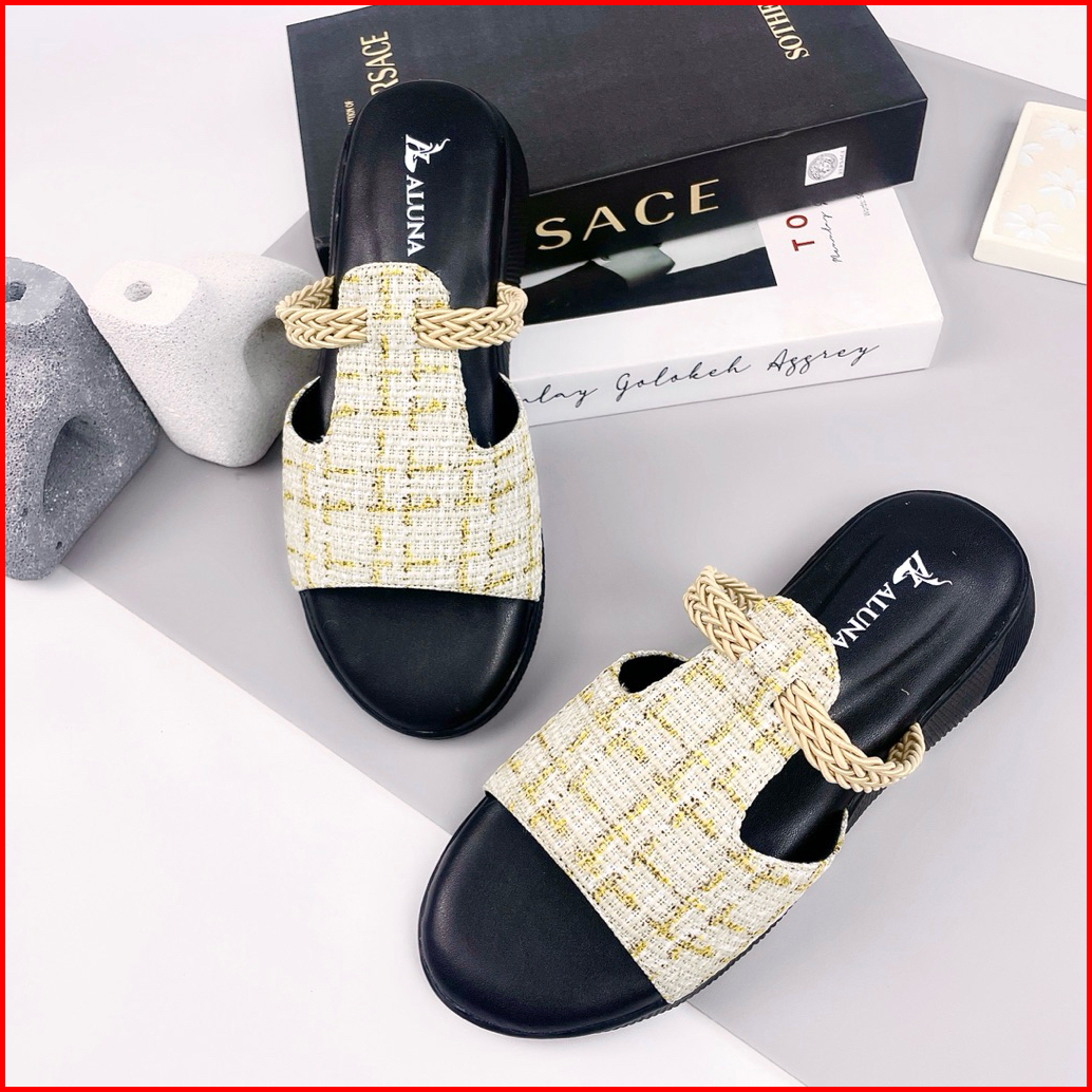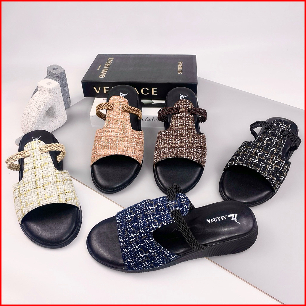 Aluna Wanda Sandal Slop Wanita Wedges Premium 3cm Elegan Simpel Kekinian Empuk Flat Pesta Casual Ori
