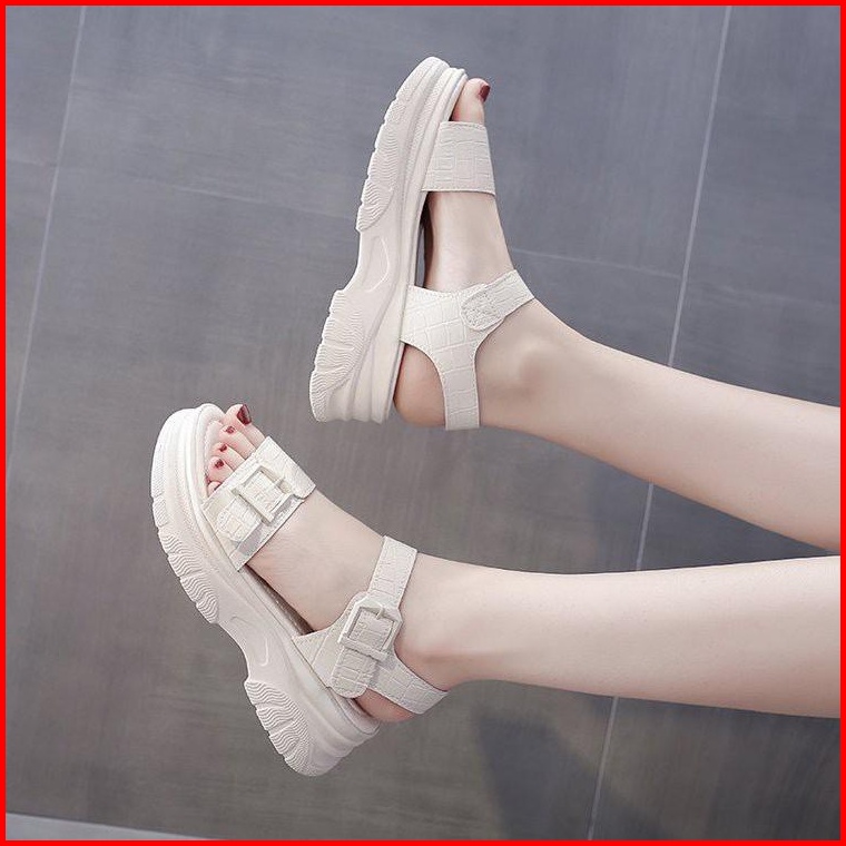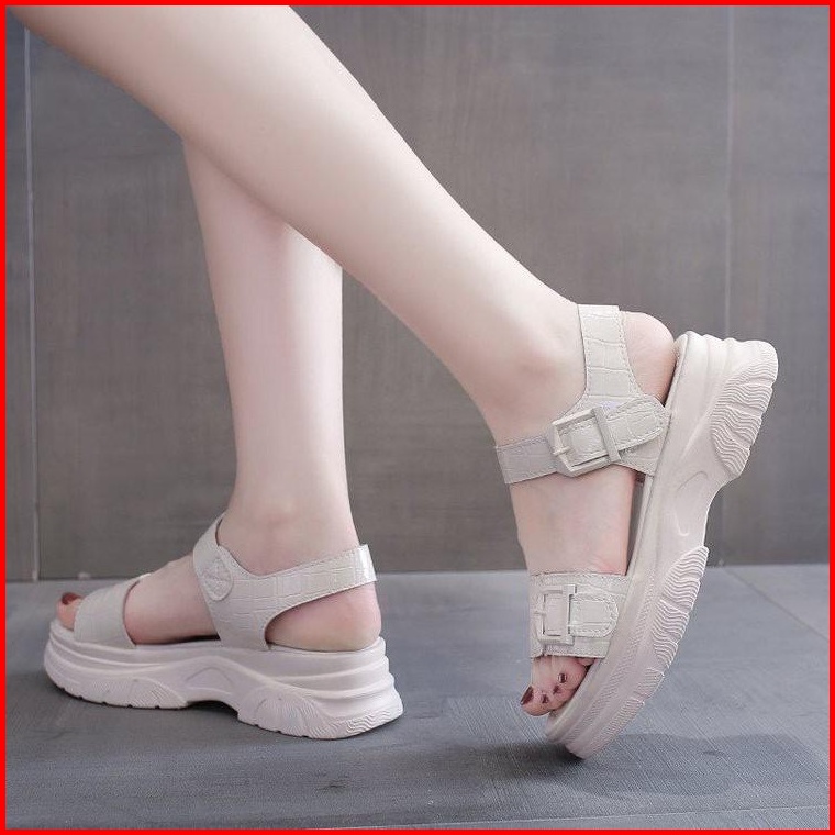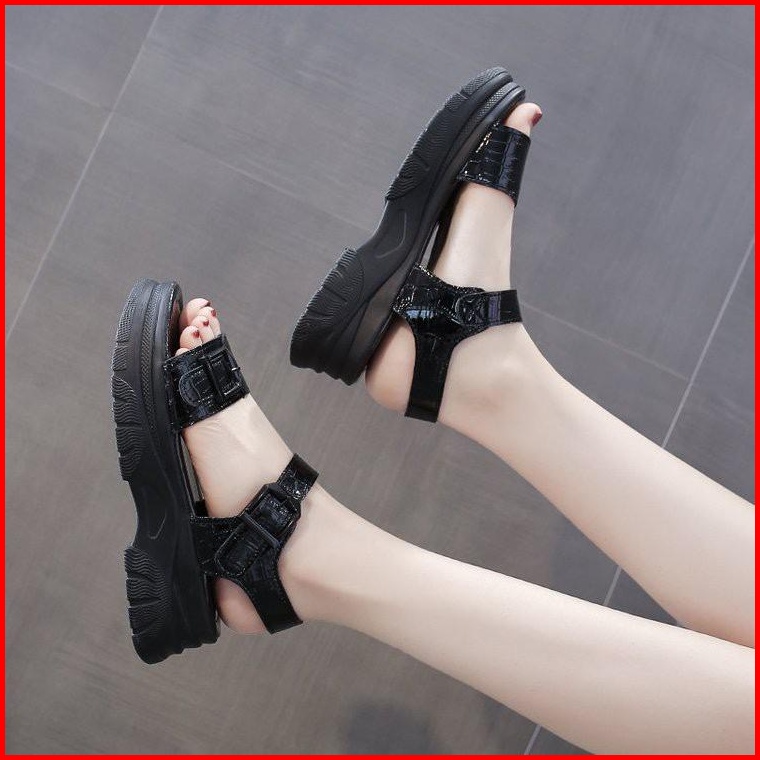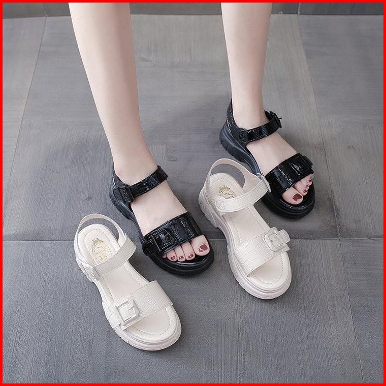 Sandal Tali Wanita Korea Import Hitam Polos Kai Platform Free Box Gratis Ongkir