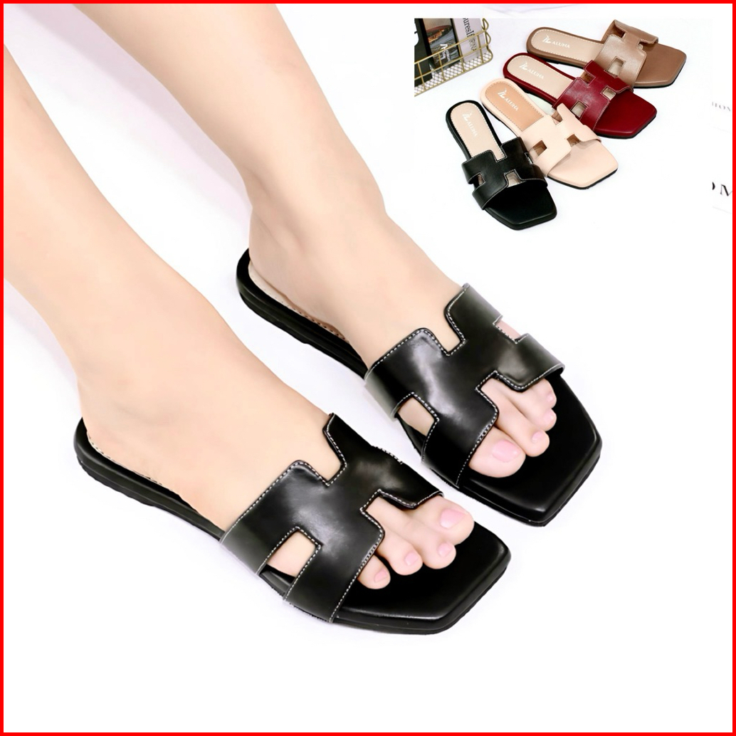 Aluna Auren Sandal Wanita Elegan Sendal Teplek Selop Cewek Korean Style Slop Kekinian Mewah Empuk