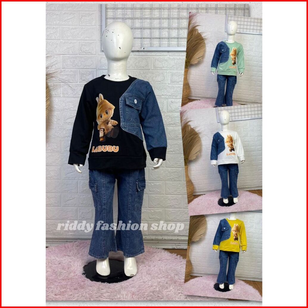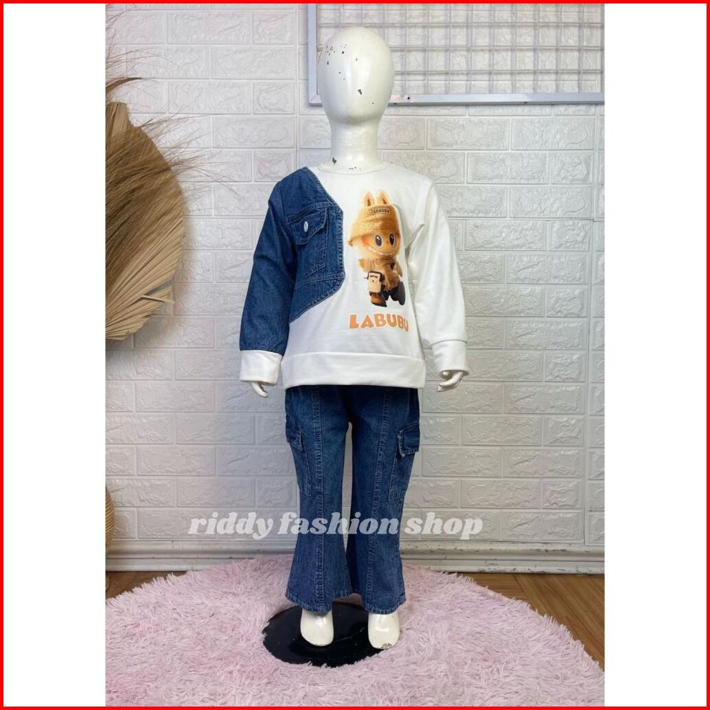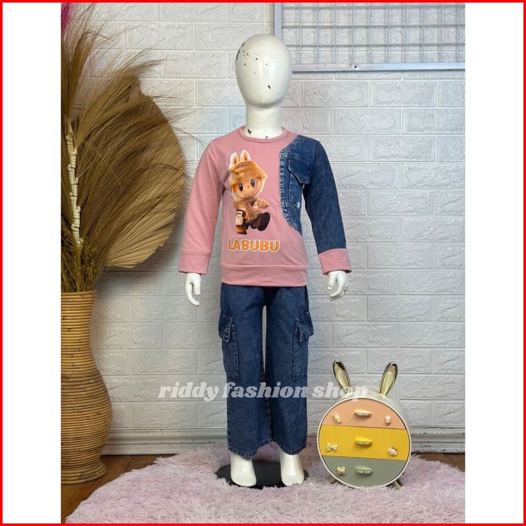Setelan Labubu Babytery Celana Cutbray Anak Perempuan Usia 3 - 10 Tahun Set. Karakter Anak Viral Terbaru - Oneset Kombin