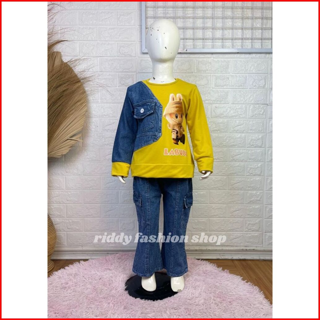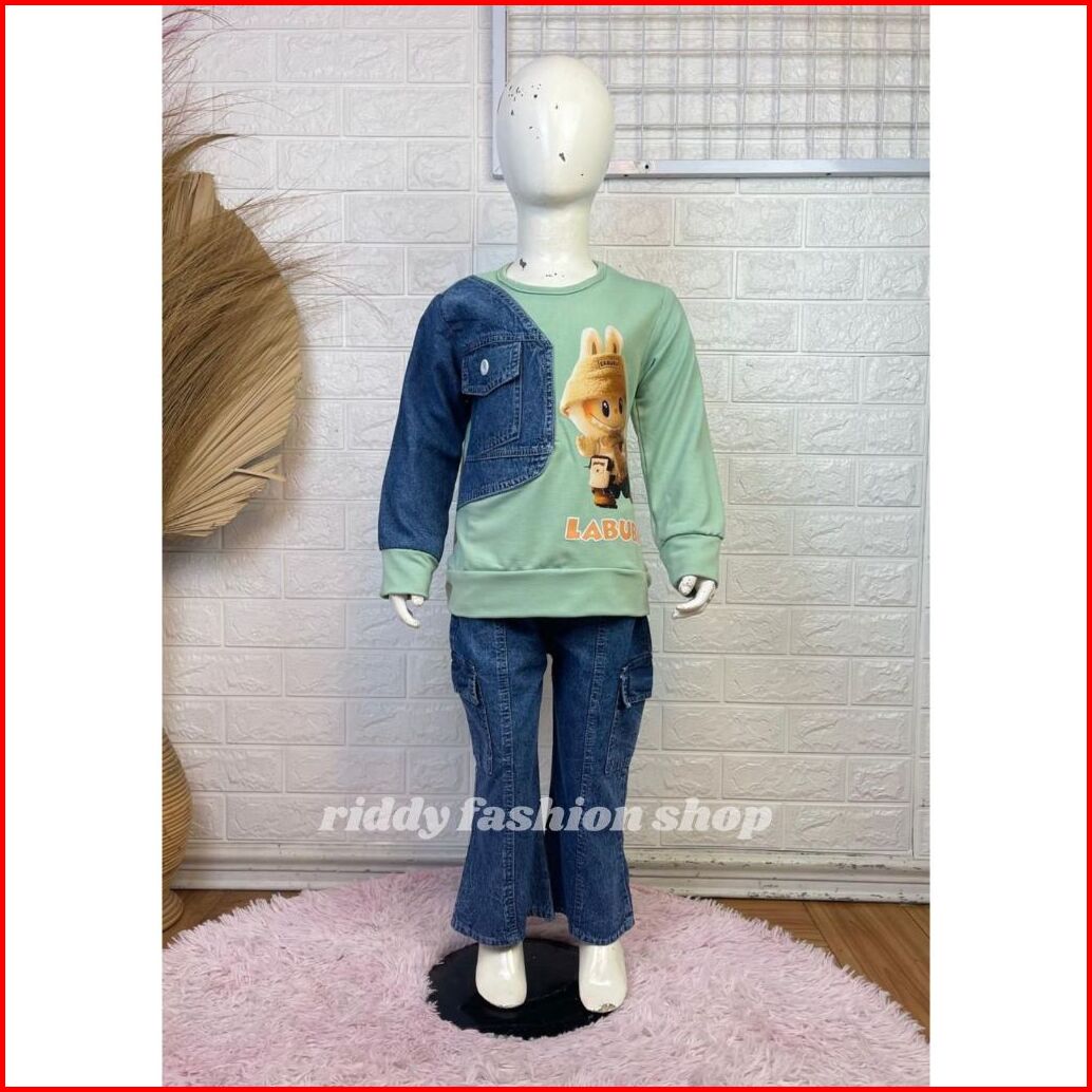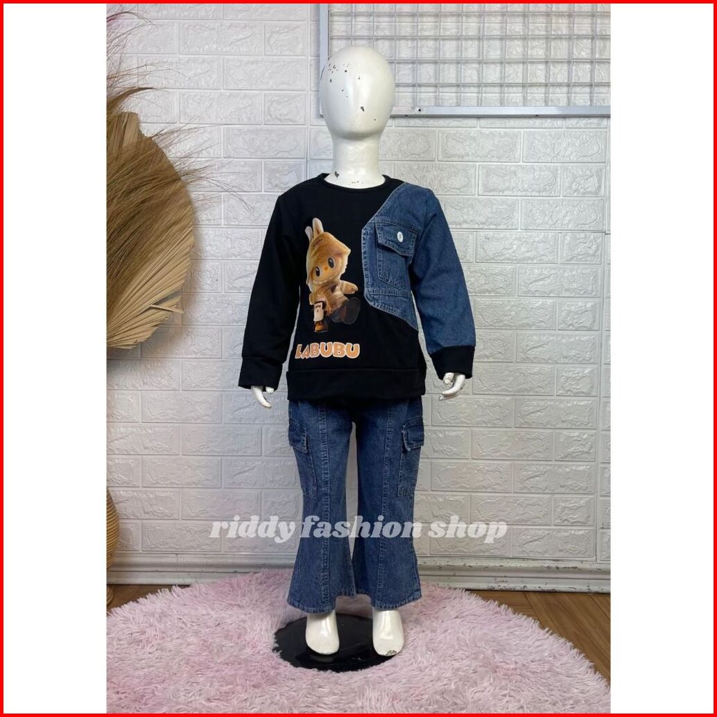 Setelan Labubu Babytery Celana Cutbray Anak Perempuan Usia 3 - 10 Tahun Set. Karakter Anak Viral Terbaru - Oneset Kombin