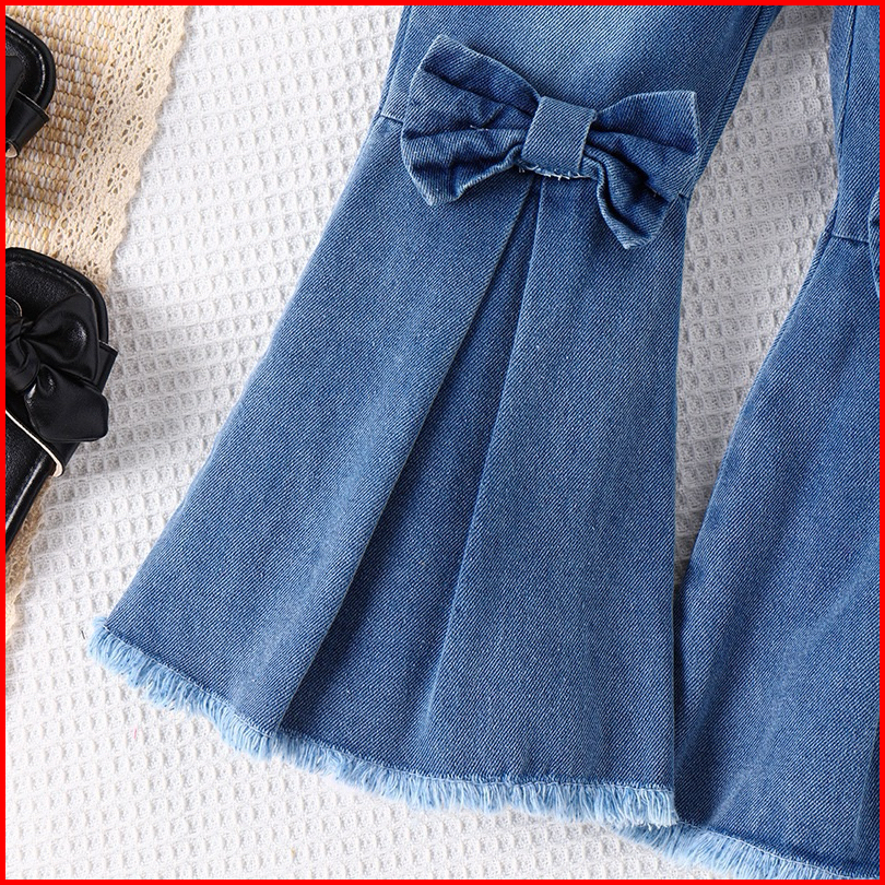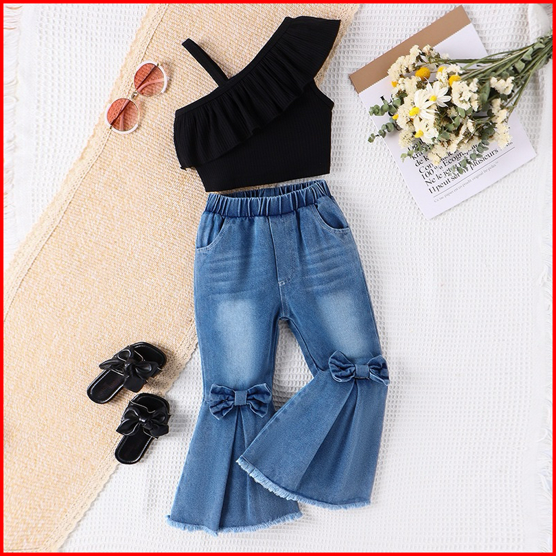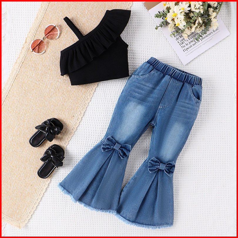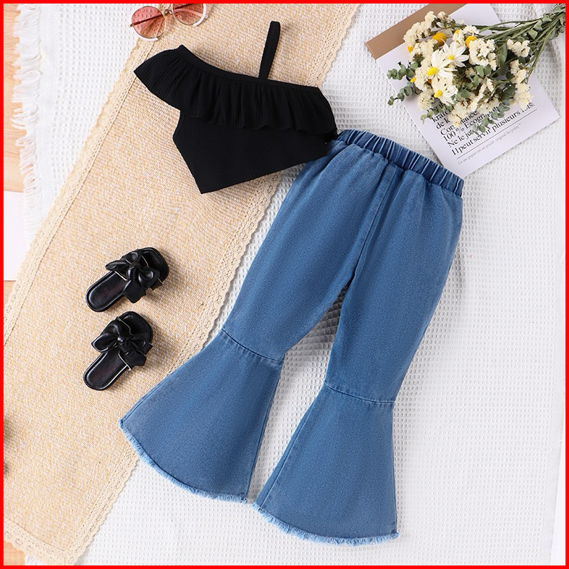Setelan Baju Anak Crop Top Dan Celana Jeans Cutbray Anak Perempuan