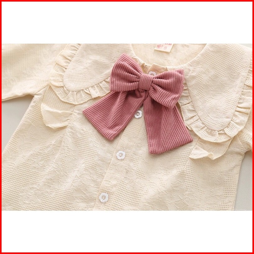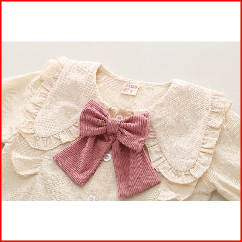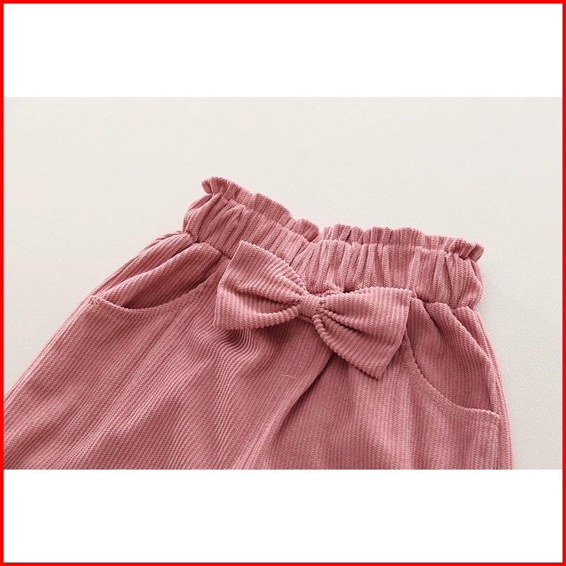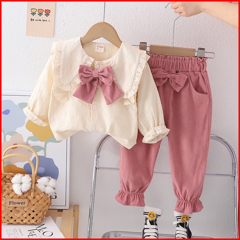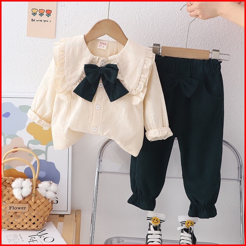 Joyfultots Setelan Anak Perempuan Gaya Korea Kemeja Lengan Panjang Pita Gaya Barat Celana Kasual Set