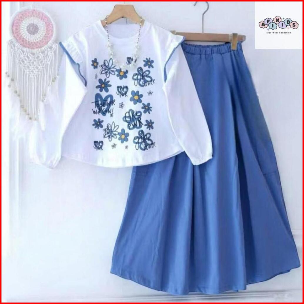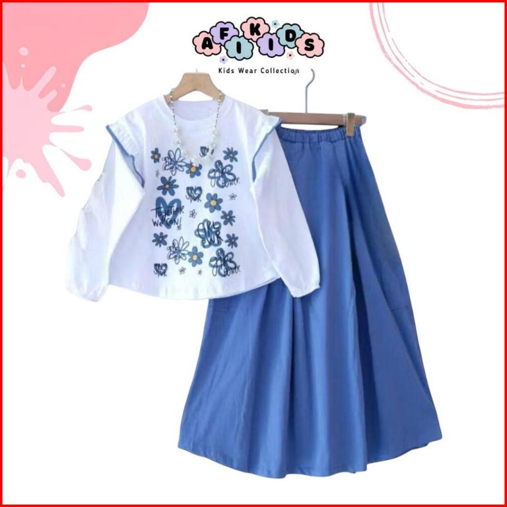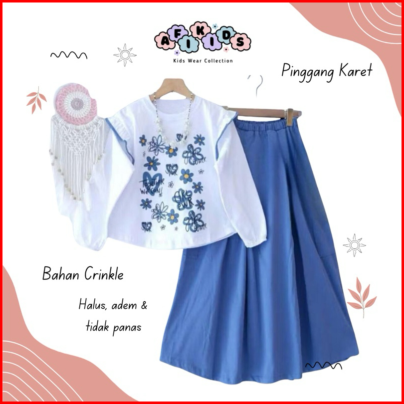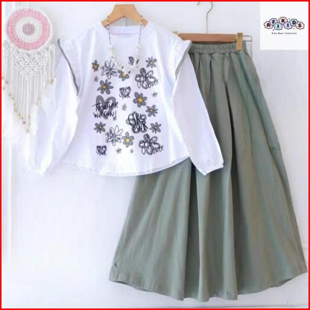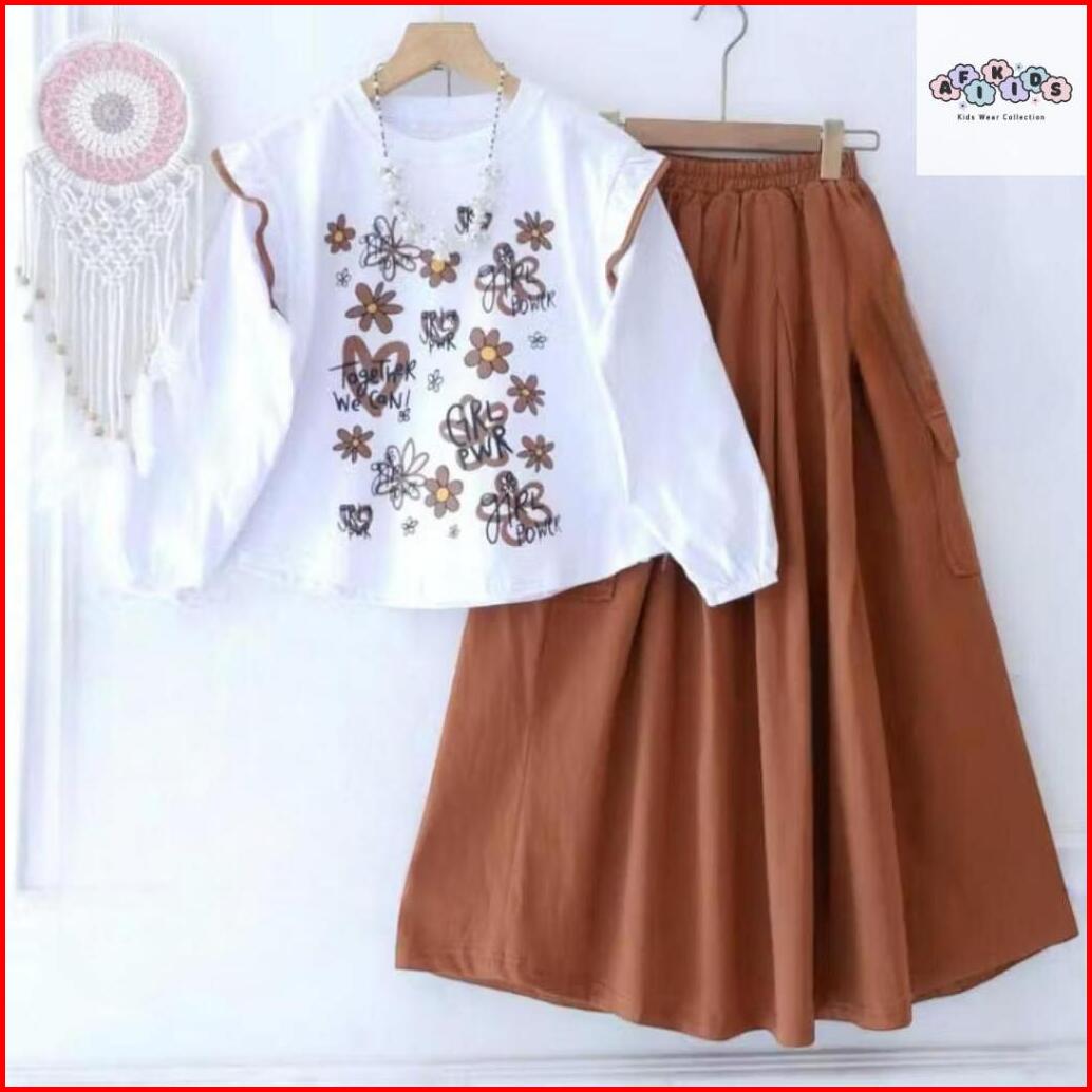 Azizi Set Kids 7thn-15thn Rok Cargo Crinkle Printing Setelan Azizi One Set Rok Anak Remaja Setelan Anak Kekinian Setelan
